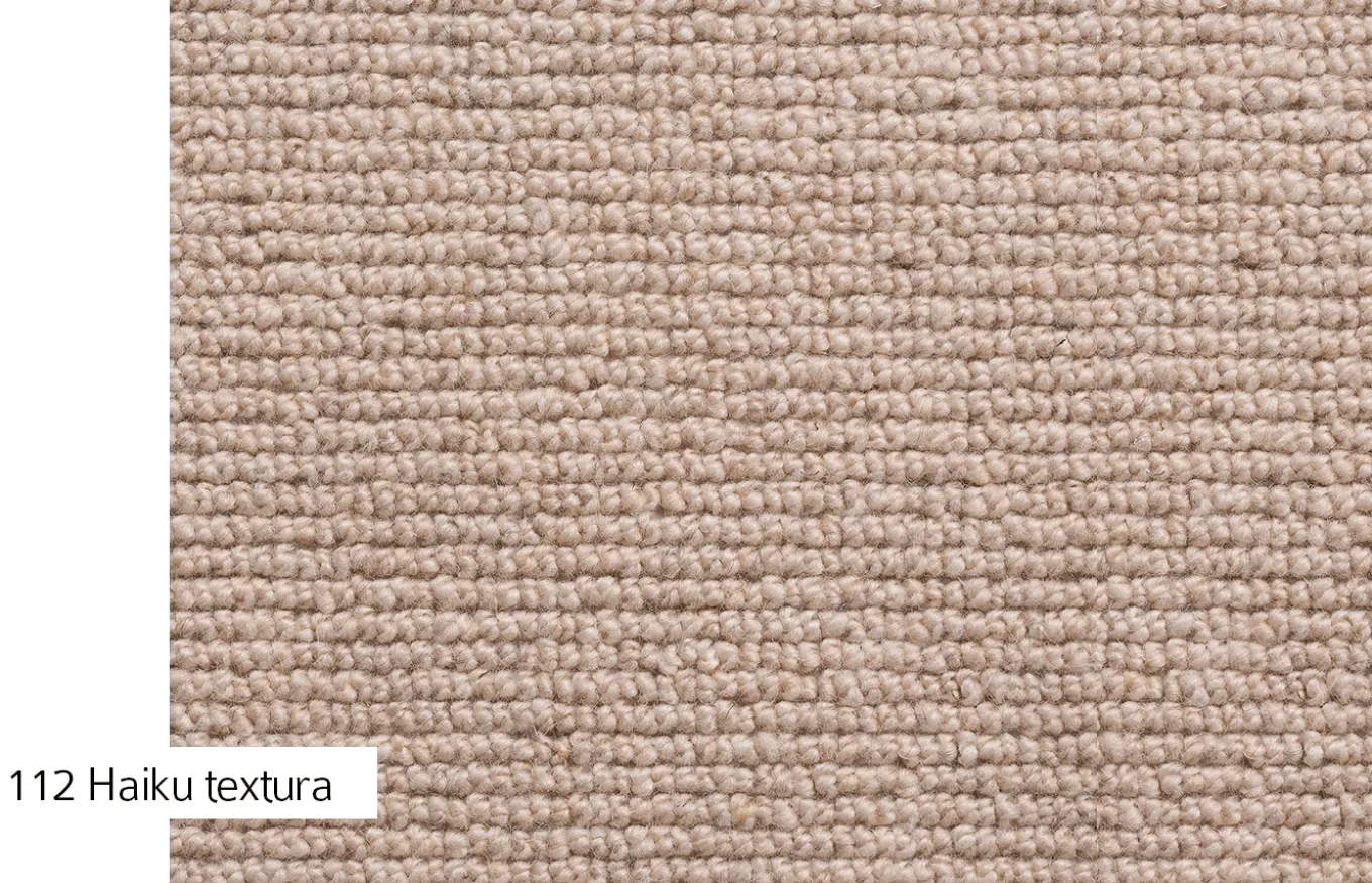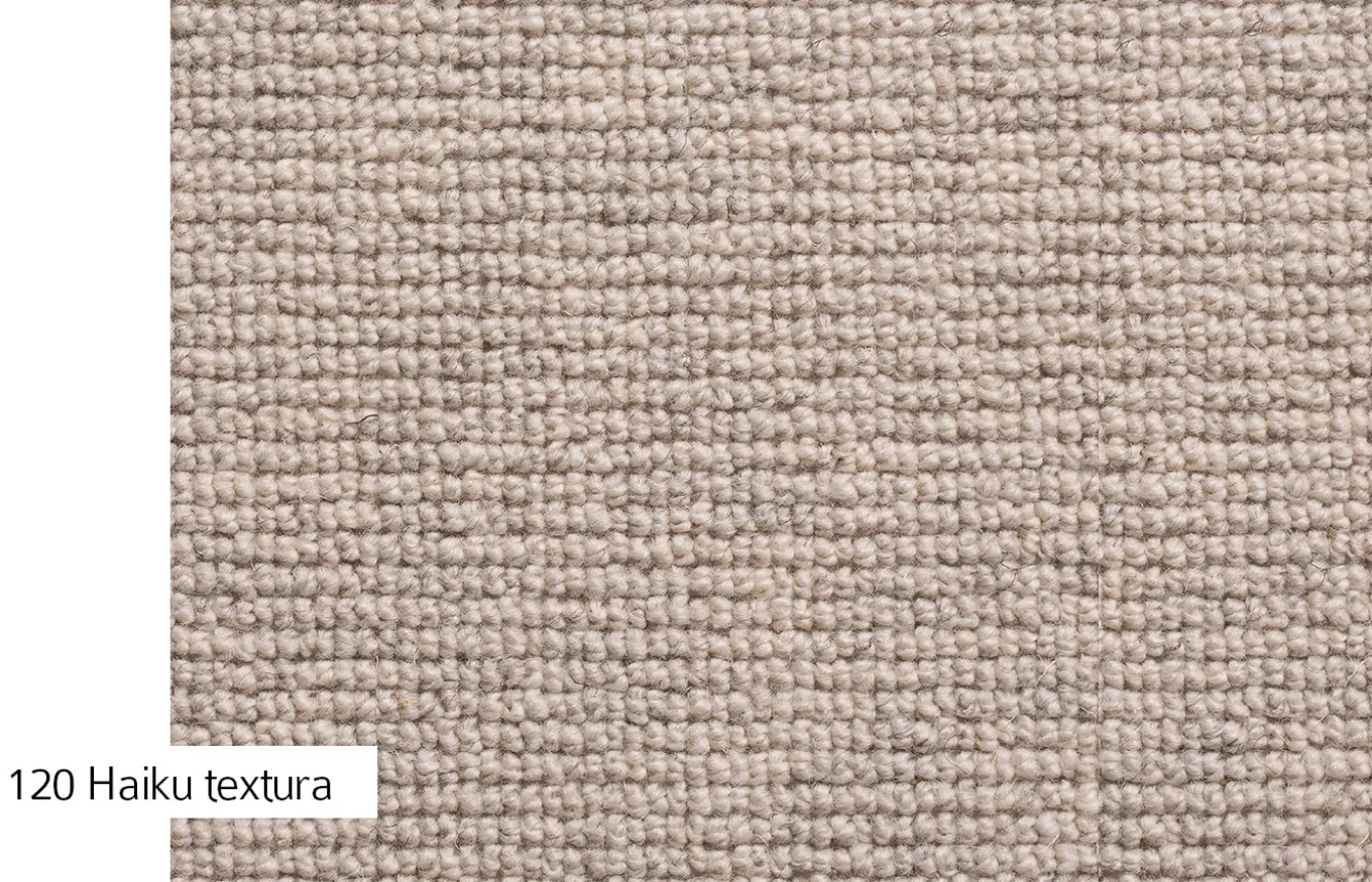 Las Alfombras de la colección Haiku son de lana virgen hechas a medida por m2. Además de los motivos estéticos para elegir estas alfombras de lana, hay que tener en cuenta que las fibras de lana son aislantes tanto del frio como del calor, regulan la humedad, conservan mejor su colorido y elasticidad, y resisten el aplastamiento mejor que otras fibras.