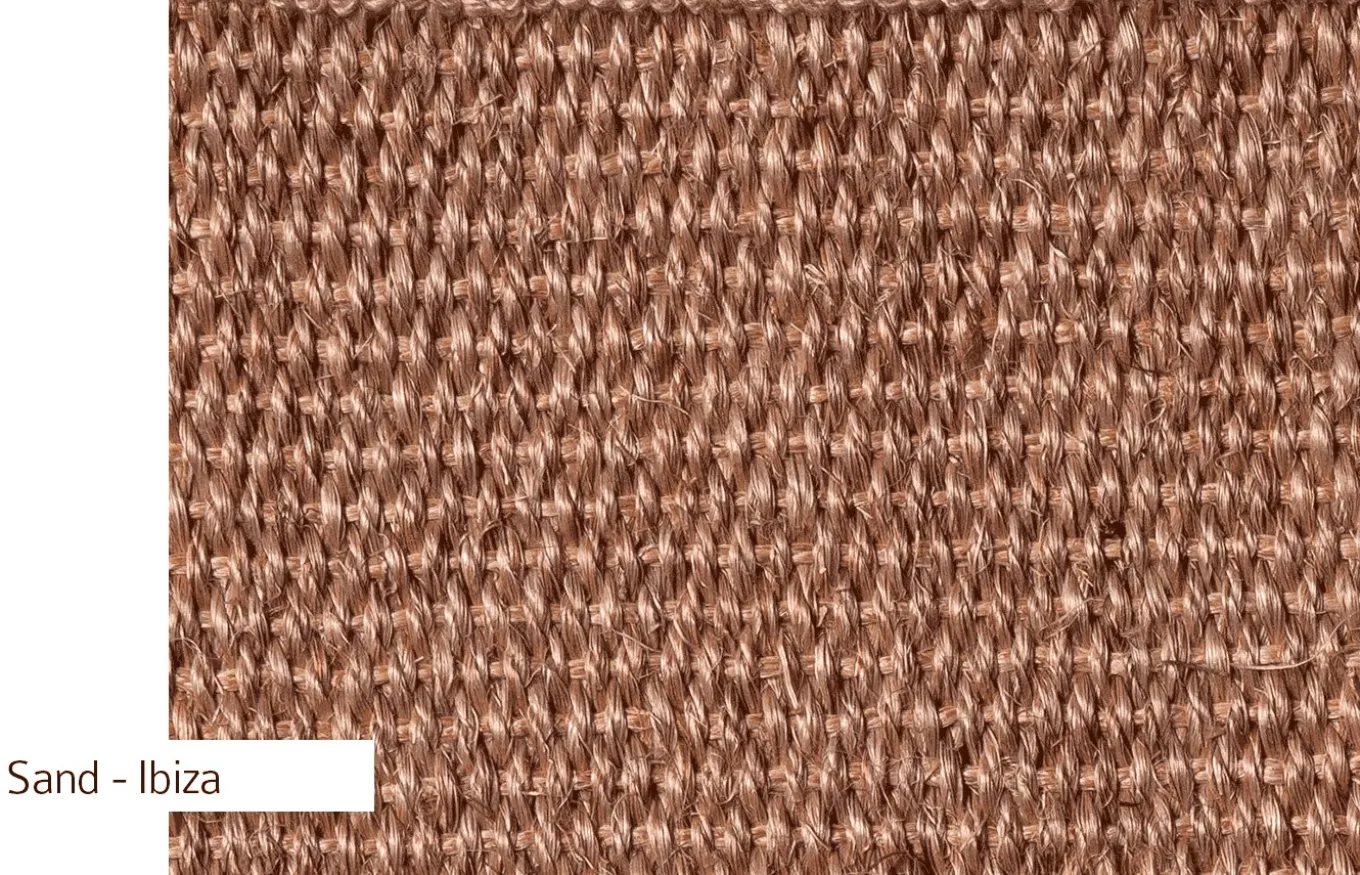La alfombra Ibiza esta fabricada en fibra de sisal natural de alta calidad. Su textura ha sido diseñada para que la alfombra cubra el área de manera cálida y discreta. La posibilidad de personalizar la greca hace que esta alfombra sea de un estilo muy versátil capaz de adaptarse a cualquier estilo.