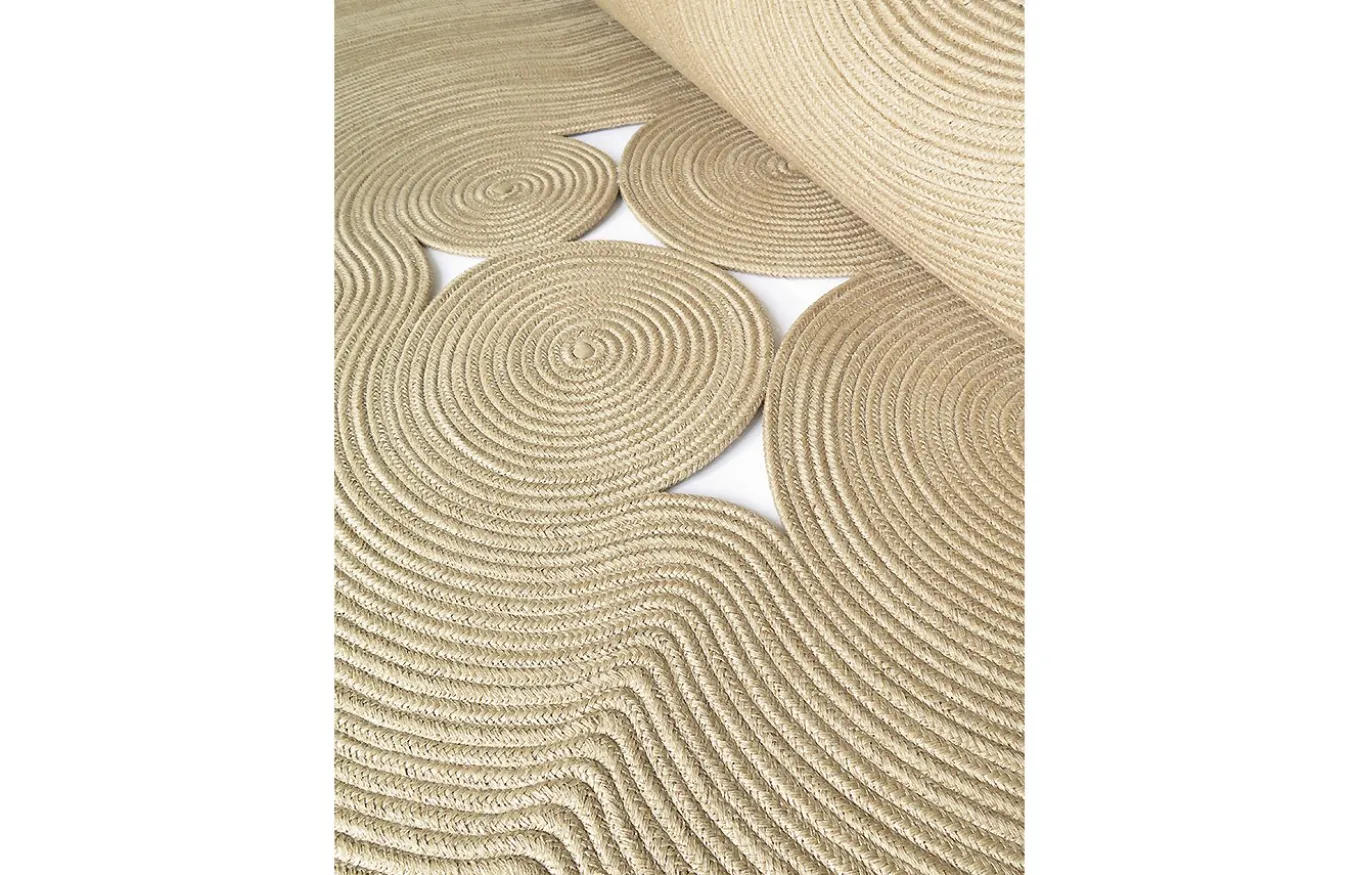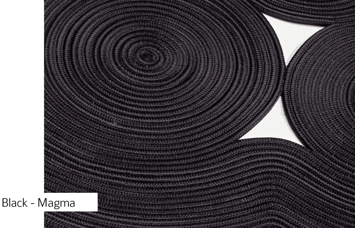 La alfombra Magma tiene dos lados útiles, ya que se puede girar y disfrutar de una alfombra nueva. El cordón está fabricado especialmente para estas alfombras, el interior es de fibras de algodón, y el exterior de yute trenzado y encerado, las puntas están rematadas en nobuk. La alfombra está confeccionada con hilo de nylon invisible muy resistente.