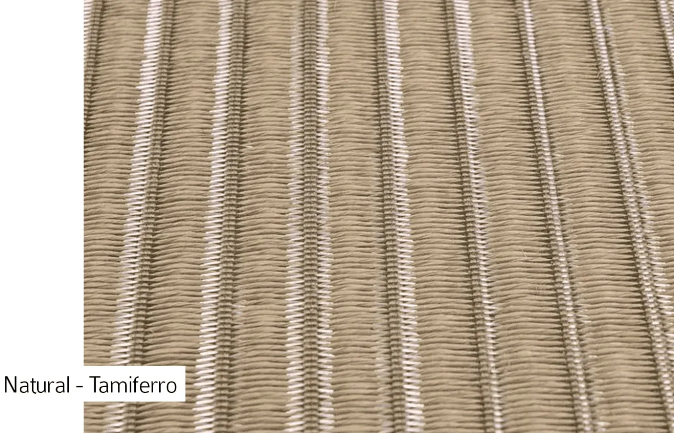 La alfombra Tamiferro es fruto de la innovación y de testear los límites de los telares. Estas alfombras están realizadas en fibras de madera y acero generando un efecto impactante.