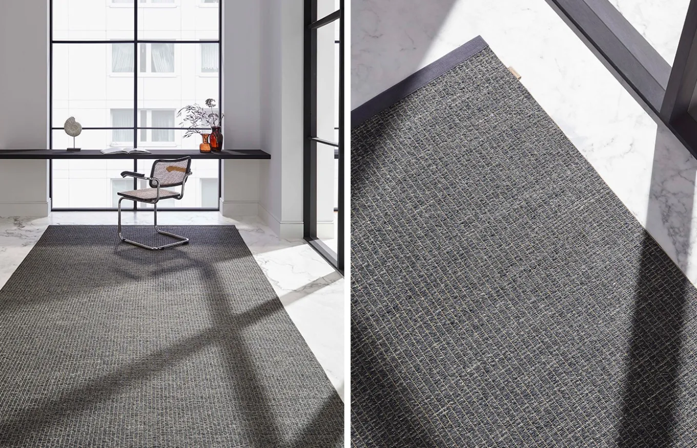La alfombra Tamisal ofrece una textura cálida y acogedora. El tacto aterciopelado se consigue gracias a la combinación de la suavidad de la chenilla con la fibra de madera. Perfecta para tumbarse a desayunar, leer, relajarse…También disponible como moqueta.