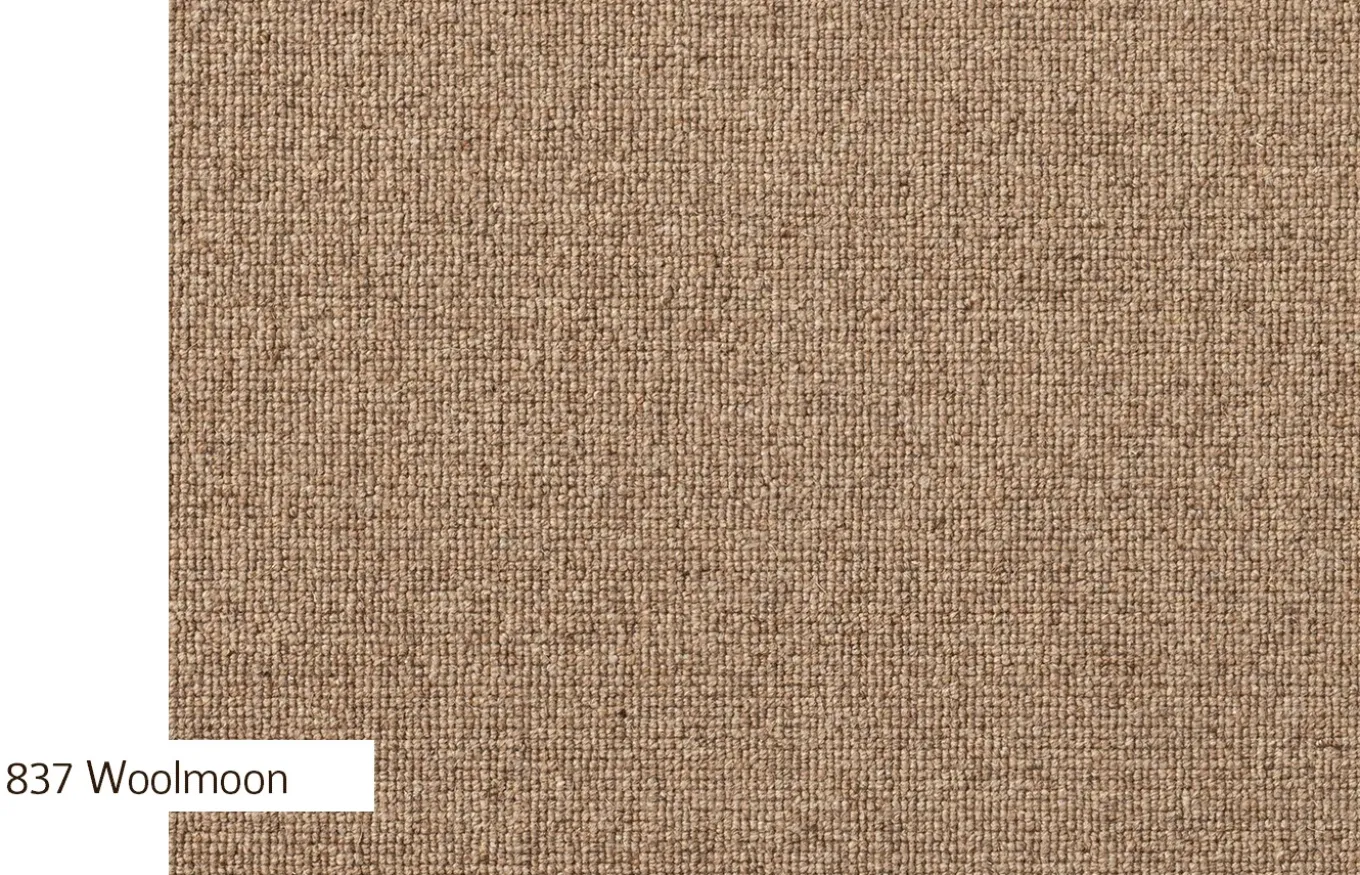 Las Alfombras a medida de la colección Woolmoon son de lana. Su confección en bucle, confiere a la colección un atractivo aspecto además de una gran resistencia al uso y al paso del tiempo, un gran coeficiente de absorción acústica y una original estética que no pasa de moda y encaja con cualquier estilo decorativo.