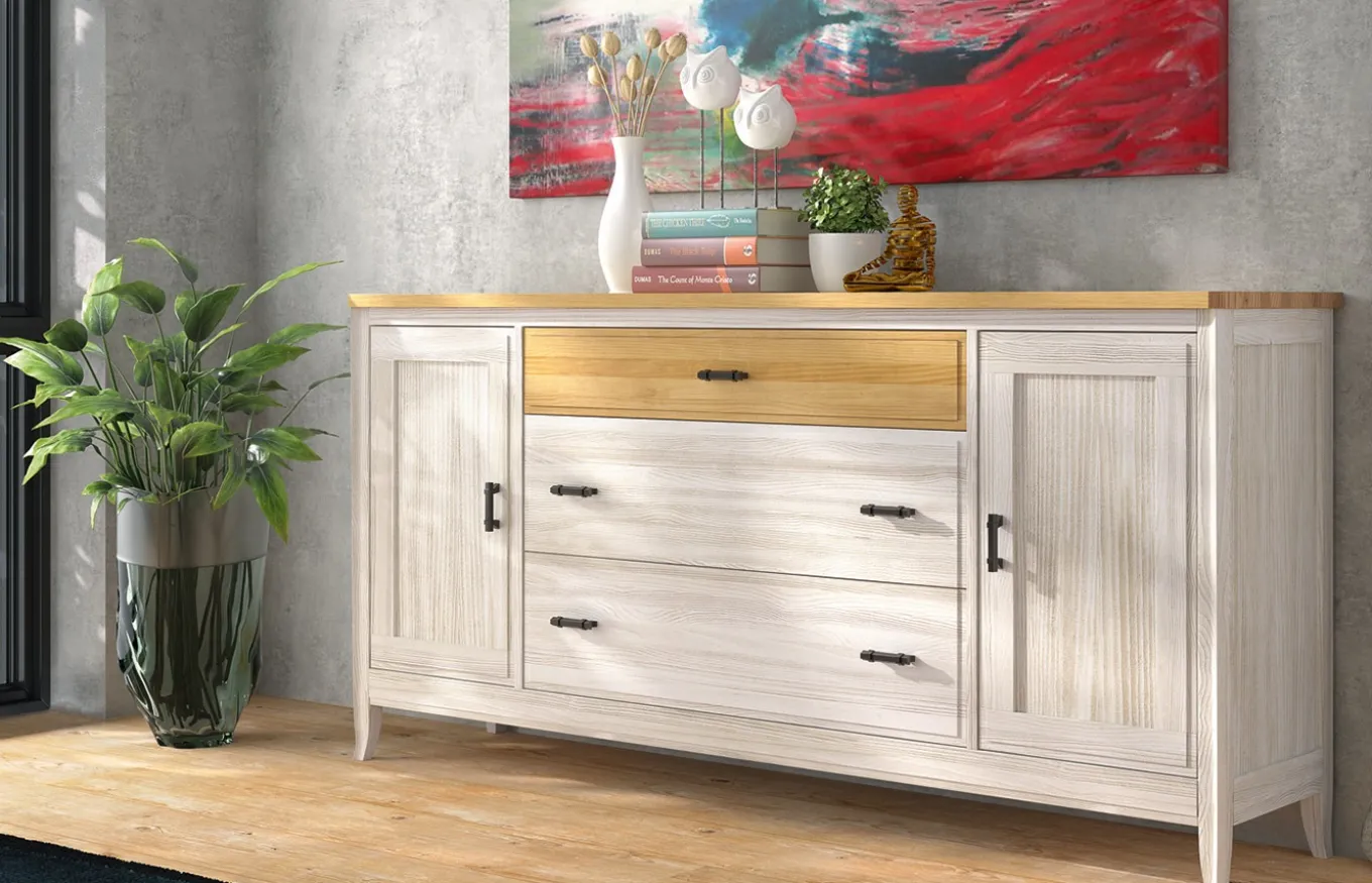 Aparador de madera de pino perteneciente a la colección Génova de la de Grupo Seys. Natura es la línea más personal de Grupo Seys, en ella confluyen la esencia de sus inicios y la madurez de la experiencia, basados en el más tradicional respeto al tratamiento de la madera y con un diseño atemporal, su elegancia natural realza los valores más representativos de la identidad de Grupo Seys. Inspirados en acabados respetuosos con el medio ambiente, con terminaciones y colores que son capaces de crear en tu hogar un equilibrio especial.