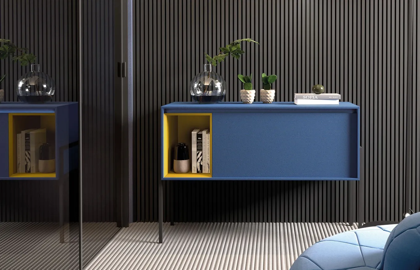 Aparador de estilo moderno. La colección Kross se desarrolla en torno a una gran variedad de módulos con distintas medidas, puertas batientes, abatibles, cajones y una multitud de opciones con diversidad de materiales y acabados. Una manera diferente de entender el mueble, pensado no solo para ordenar, sino para el placer de crear y diseñar tu propio mueble.