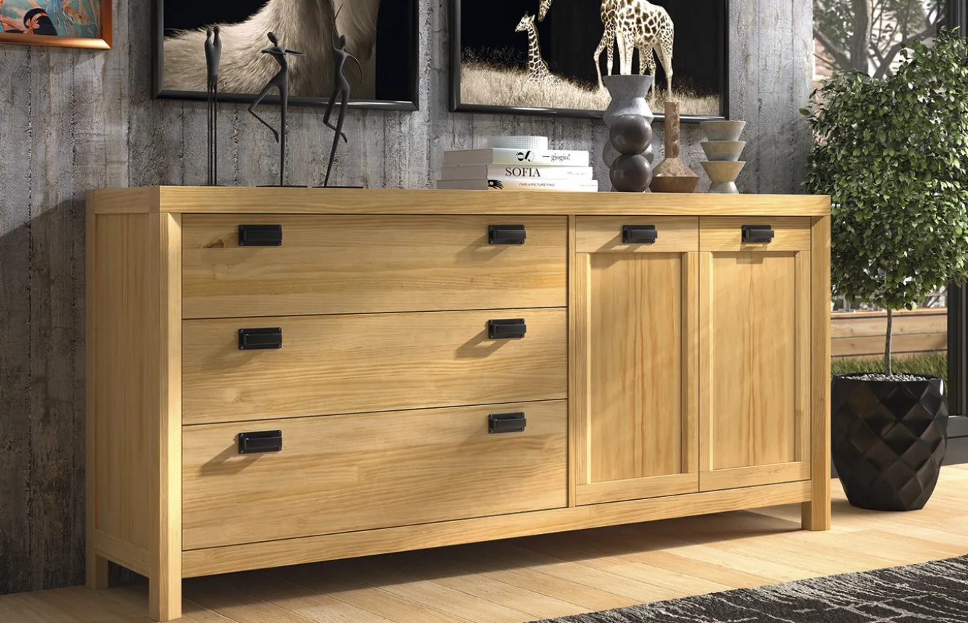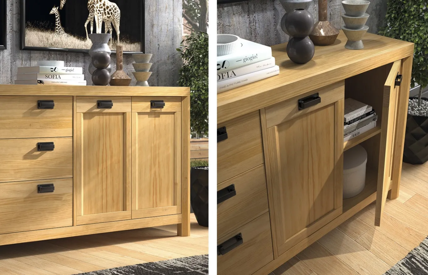 Aparador perteneciente a la colección Lyon de la de Grupo Seys. Essential, es una nueva línea que transmite la esencia del mueble, su valor en lo cotidiano, en el día a día, su importancia en nuestro hogar, esencia atemporal que nos envuelve en matices aprendidos a lo largo de la experiencia pero que a la vez llega con una frescura actual. La nueva línea se inspira en el equilibrio de las formas, líneas que abrazan el valor del mueble de siempre en autentica madera con estilo totalmente contemporáneo.