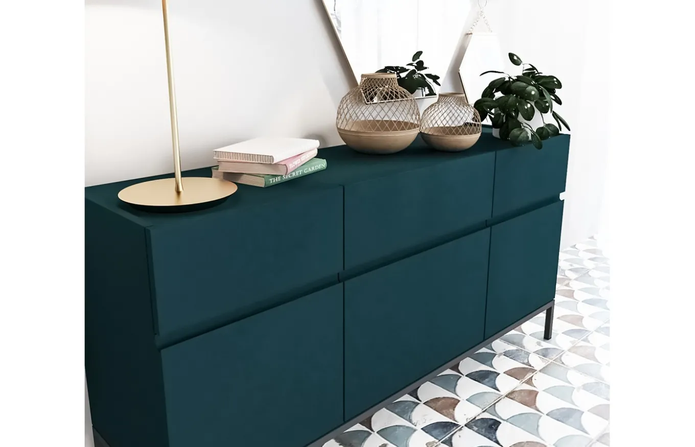 Aparador perteneciente a la Colección Qubic 2.0 de . Su diseño, de líneas rectas, hace que Qubic se amolde a cualquier espacio. También tiene valores de estilo tradicional, ya que su chapado de madera natural transmite un ambiente cálido y acogedor.