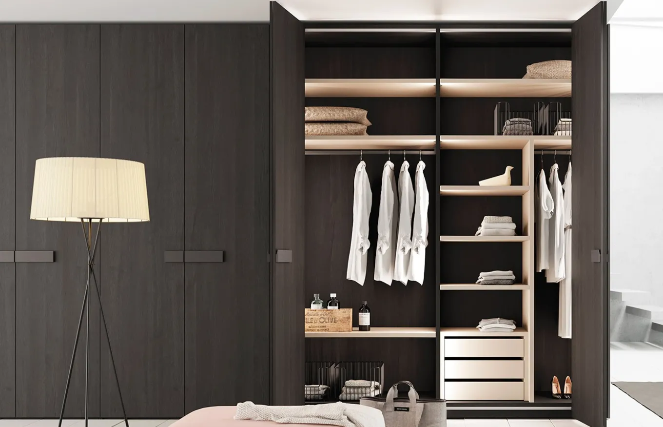 Hemos valorado el interior del armario según la distribución mostrada en la imagen adjunta. No obstante, es posible personalizar el diseño para adaptarlo a tus necesidades, ajustando la disposición interior, los acabados y otros detalles. A continuación detallamos el interior del armario: