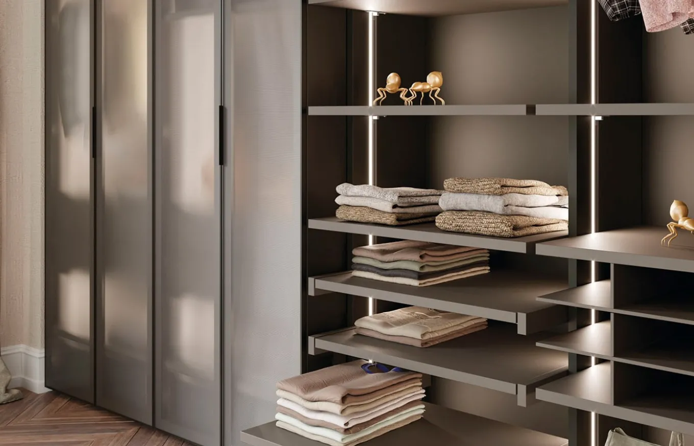 Disfruta de la máxima organización y estilo en tu vestidor con el armario a medida Closed de Lagrama. Este sistema modular te permite crear un espacio personalizado que se adapta perfectamente a tus necesidades y a la distribución de tu habitación. Se caracteriza por sus líneas depuradas y su diseño minimalista, que aporta un toque de sofisticación a cualquier ambiente. Elige entre una amplia gama de acabados y materiales para crear el vestidor de tus sueños.