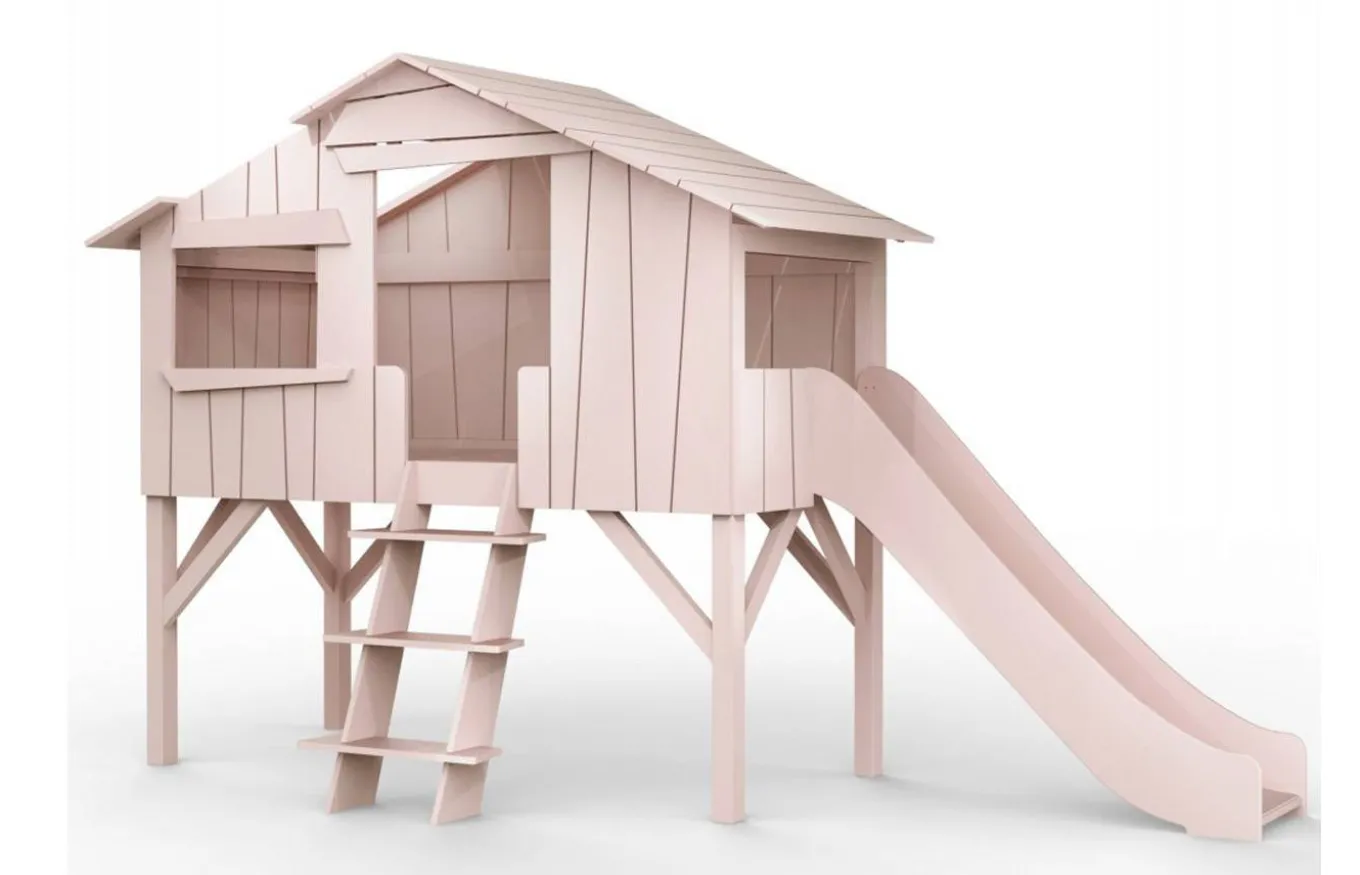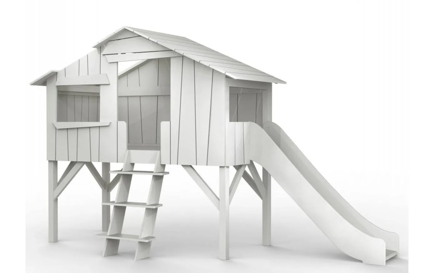 Llena la habitación de tus hijos de sueños con la cama casita de Mathy by Bols. Una singular cama que simula una cabaña en un árbol ¿Quién no ha deseado en su infancia tener una cabaña en un árbol?. Está diseñada con tableros desiguales, igual que una cabaña de árbol real, y una segura escalerita con escalones muy anchos para que tus hijos puedan subir cómodamente.