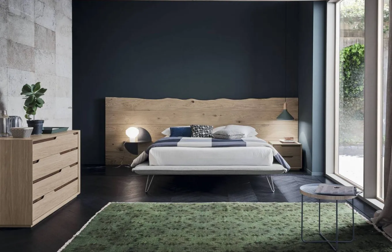 La cama modelo Wood de AltaCorte destaca sin duda por su singular cabecero, que sigue la línea del tablero wood pero adaptando su diseño para el dormitorio. La calidez de la madera maciza se combina con una base tapizada creando una combinación de texturas de lo más interesante en la que el borde irregular, que corresponde al borde del tronco, es el protagonista.