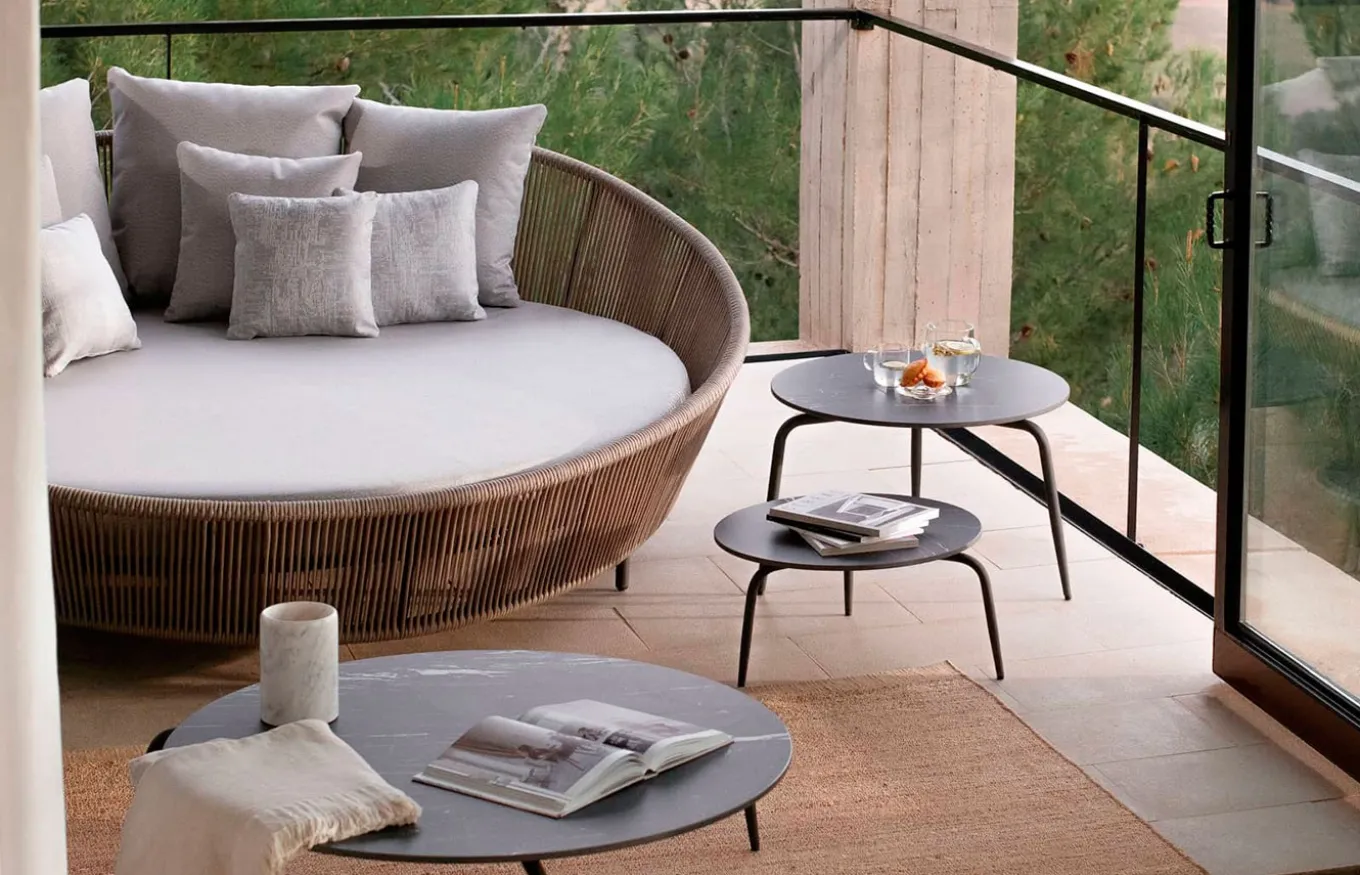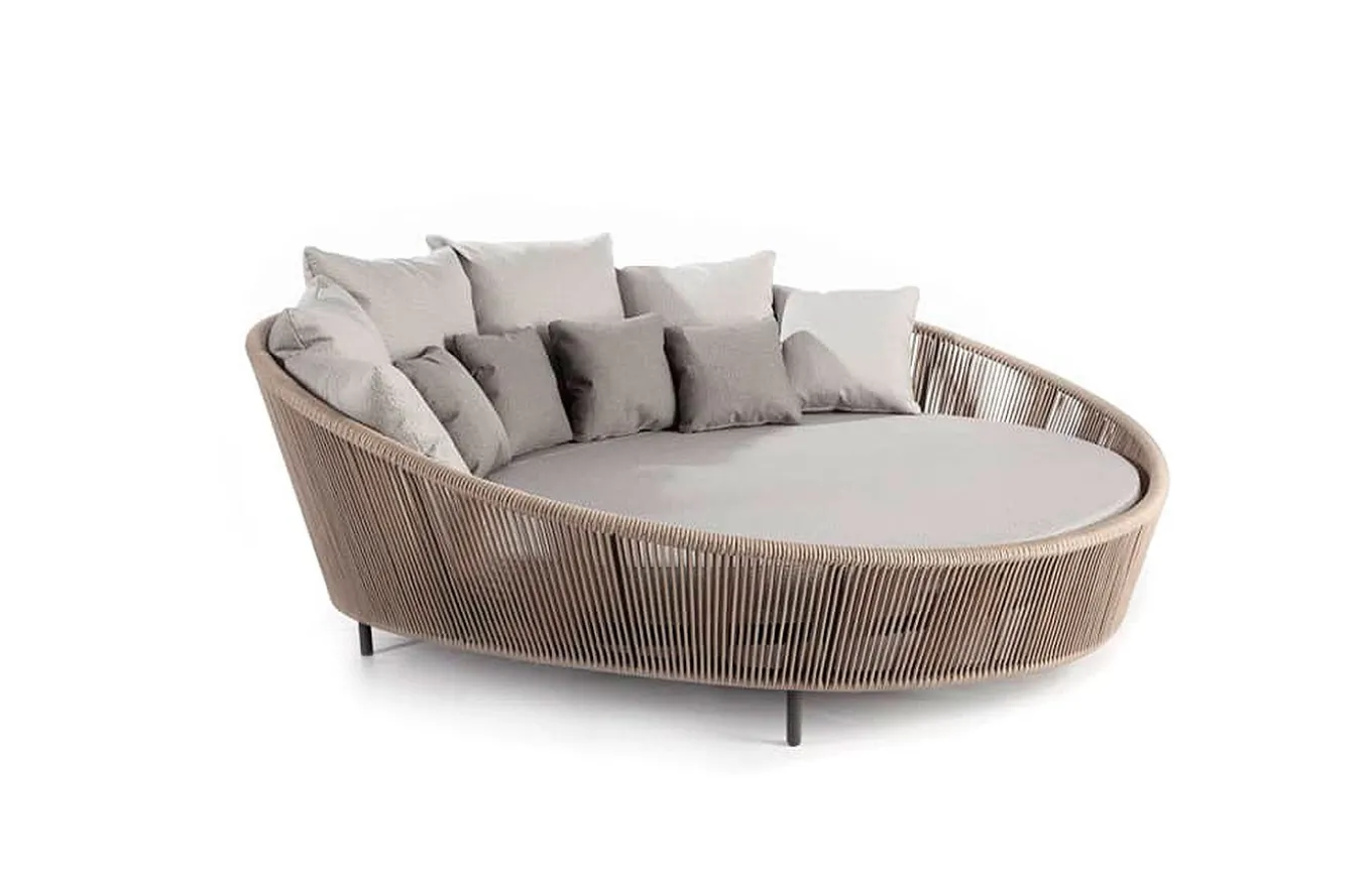 La cama de exterior Chill Out Rodona, diseñada por Santiago Sevillano para de Skyline, es una cama de exterior redonda, diseñada para disfrutar del aire libre con estilo y comodidad. Está fabricada con materiales de alta calidad y ofrece un diseño moderno y elegante que se adapta a cualquier espacio exterior.