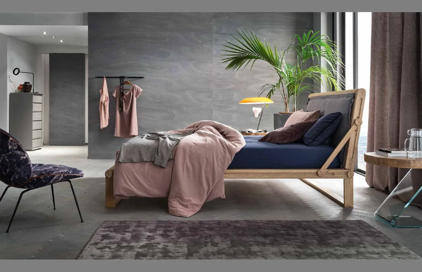 Cama Tecno de AltaCorte, fabricada en madera maciza de roble europeo, tiene un diseño mecanizado gracias al cual puedes inclinar el cabecero en múltiples posiciones.