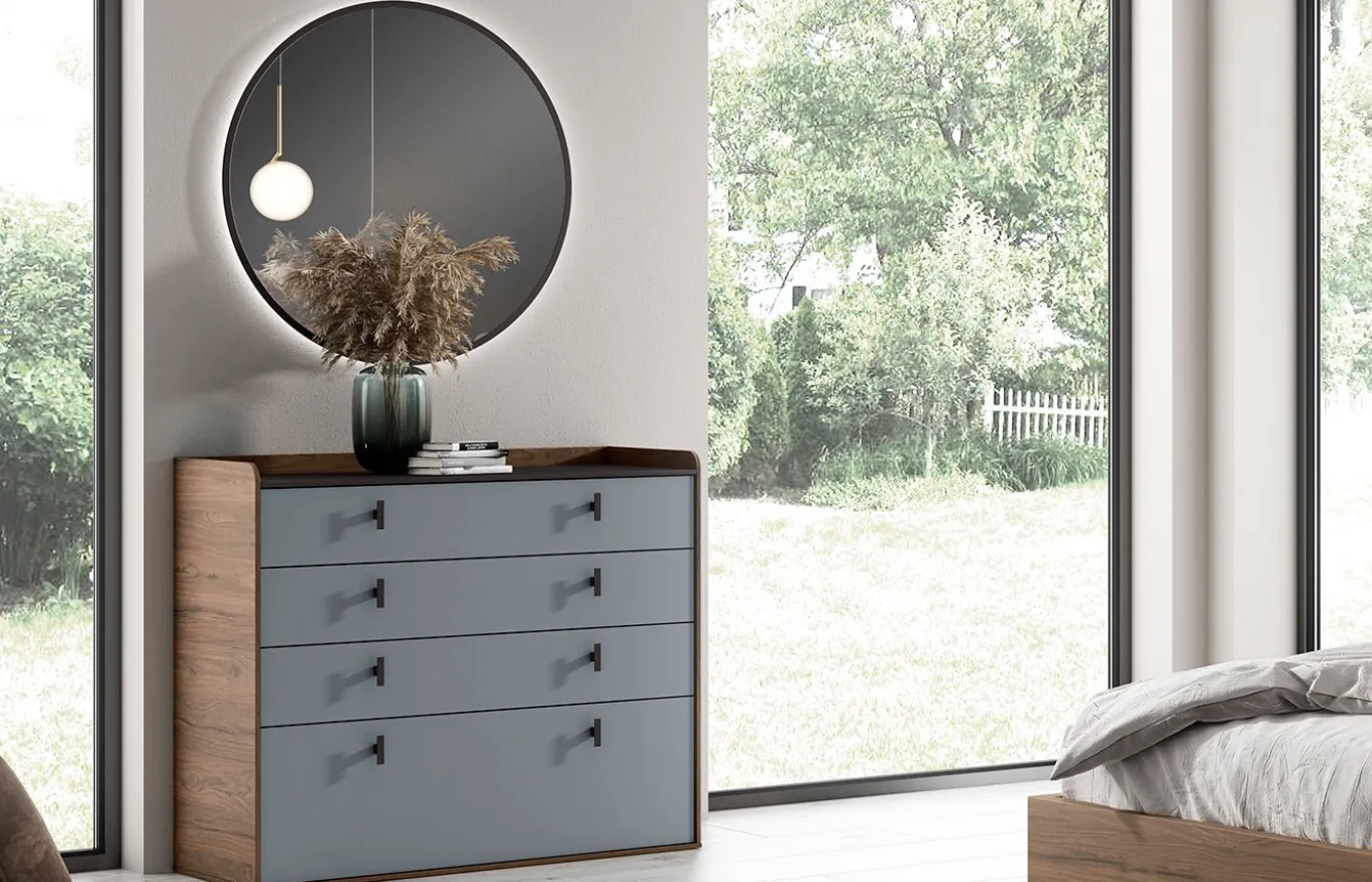 El dormitorio es la zona más importante del hogar, pues su decoración es la más personal. La cómoda Chic 2 se adapta a todos los gustos y necesidades, ya que existe la opción de combinar los diferentes acabados y, además, dispone del espacio suficiente para mantener el dormitorio ordenado.