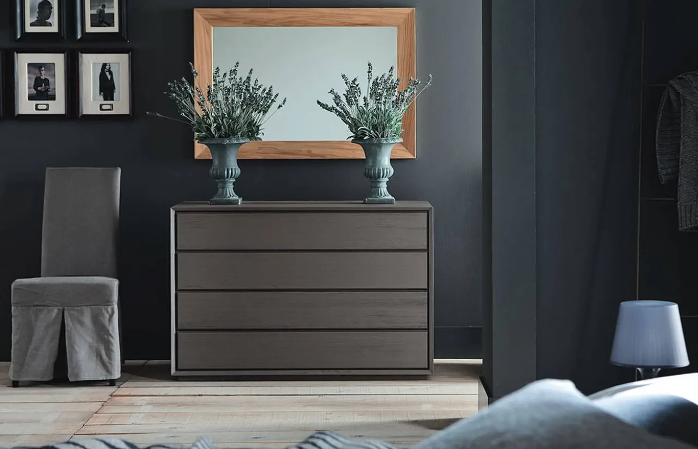 Cómoda con cuatro cajones, perteneciente a la colección Eco Lab, de estilo moderno y sencillo de lineas rectas. El modelo Nook no tiene tiradores en sus cajones, pero con el mecanismo TIP-ON de apertura asistida, basta con un ligero toque en el frente para abrirse sin necesidad de utilizar tirador.