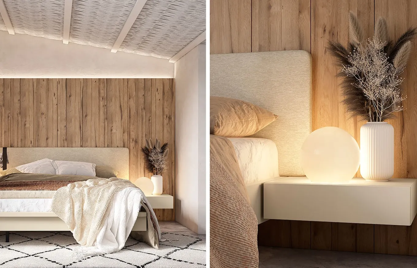 *El acabado de la imagen es madera color Canela, melamina color Panacota y téxtil color Panacotatex.