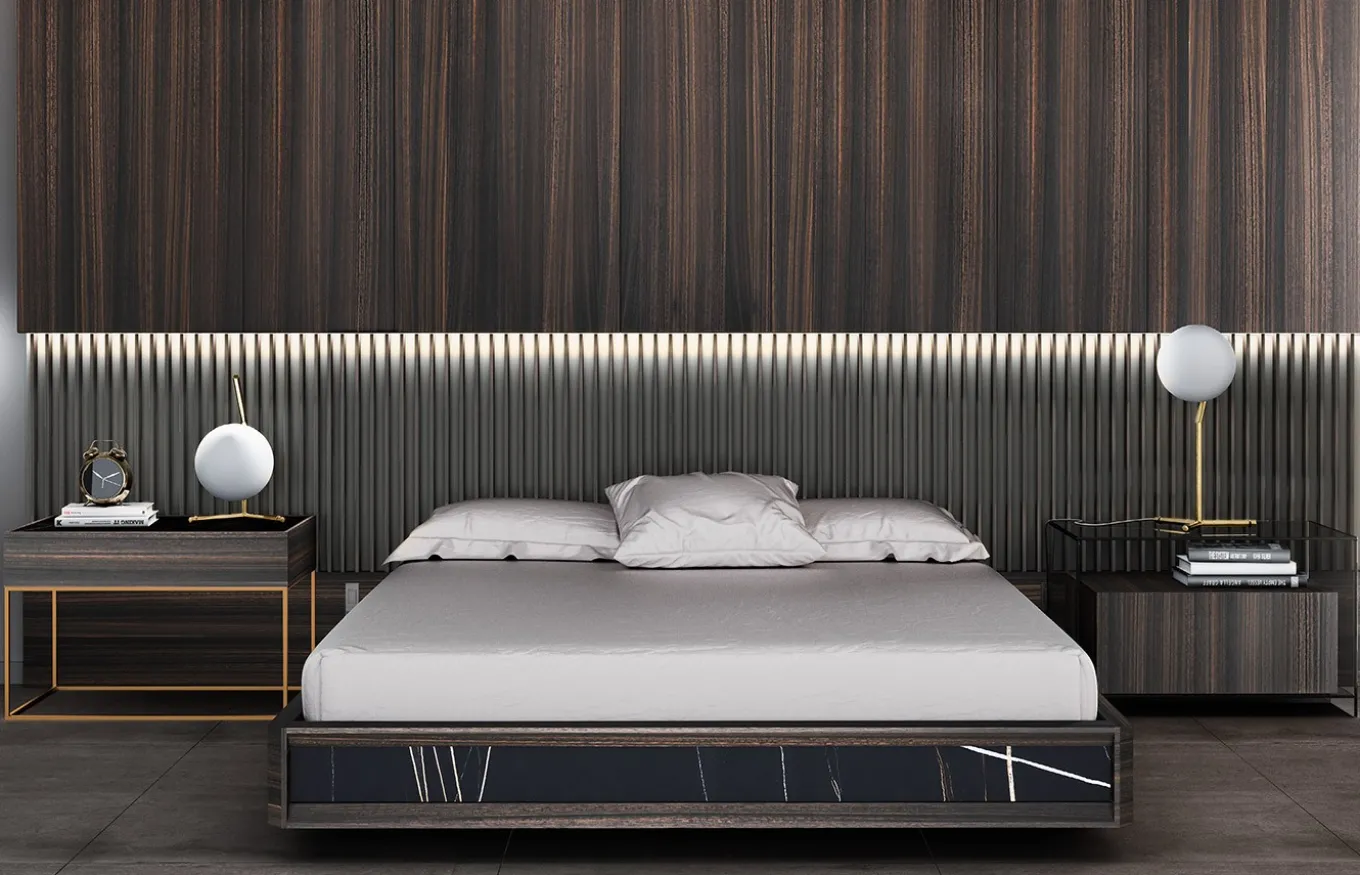 El Dormitorio Alis, perteneciente a la colección Bedrooms de Emedé, nace de la idea de aunar dos de los principales valores de Emedé:tradición, entendida como una vuelta al trabajo de ebanistería y tecnología, entendida como la utilización de maquinaria puntera para su perfecta ejecución. El panel está conformado por listones de madera perfectamente encastados sobre una trasera plana, generando una estética intemporal que desprende calidad.
