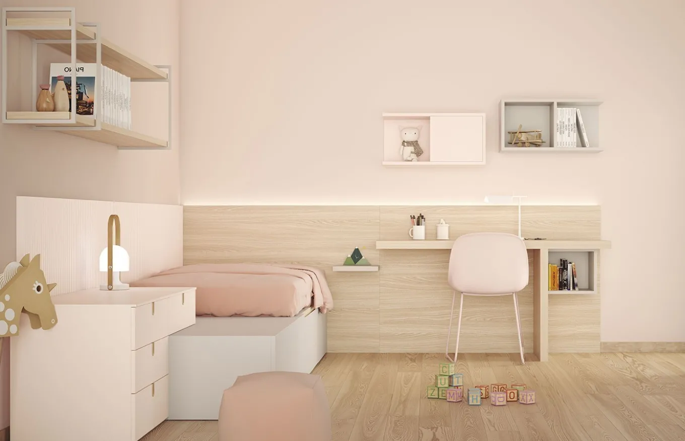 Habitación infantil juvenil de la colección Tweed de Tobisa con los siguientes elementos: