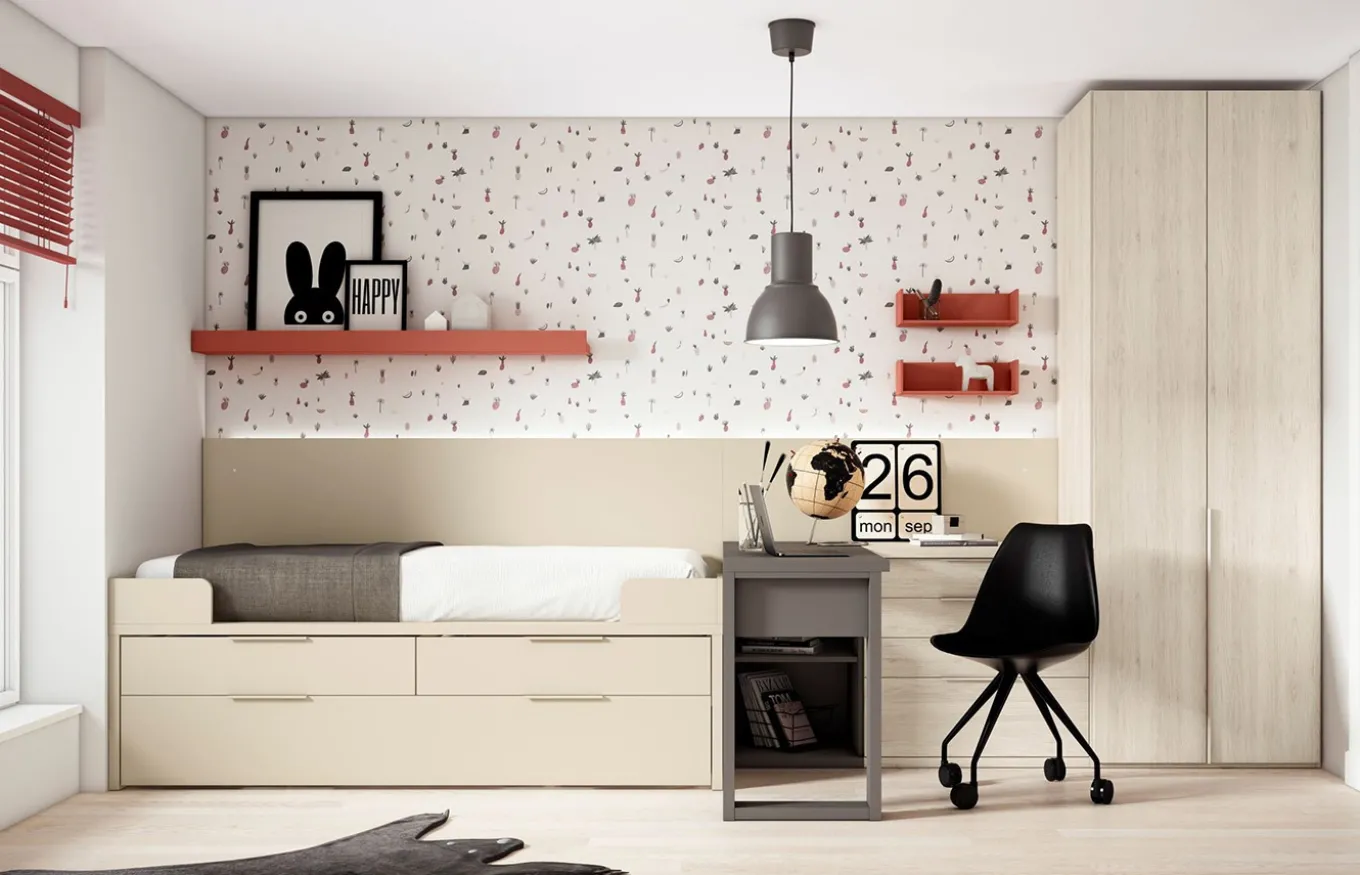 ¿Necesitas una solución práctica y funcional para amueblar tu dormitorio pequeño? Las camas compactas son la opción ideal para aprovechar al máximo el espacio disponible. Combinan una cama superior con una inferior que se esconde o se despliega según tus necesidades, creando un espacio multifuncional que te permite tener una cama doble, una cama individual adicional o un espacio de almacenamiento extra, todo en un solo mueble.