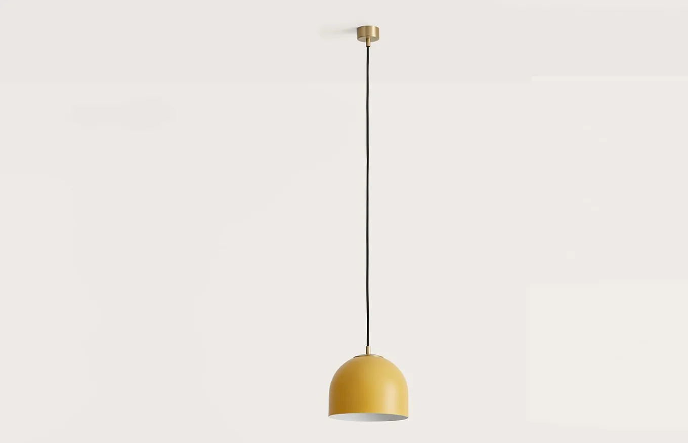 La lámpara colgante Alpha incluye una pantalla de acero pintada en alguno de los colores de la paleta de color de Aromas. Puede colocarse aislada, pero es ideal para combinarla formando un grupo de varias lámparas a distintas alturas.
