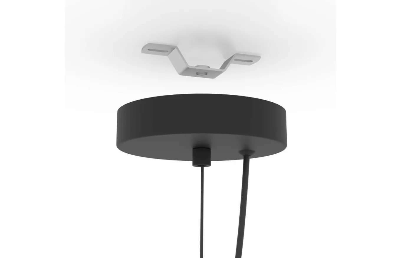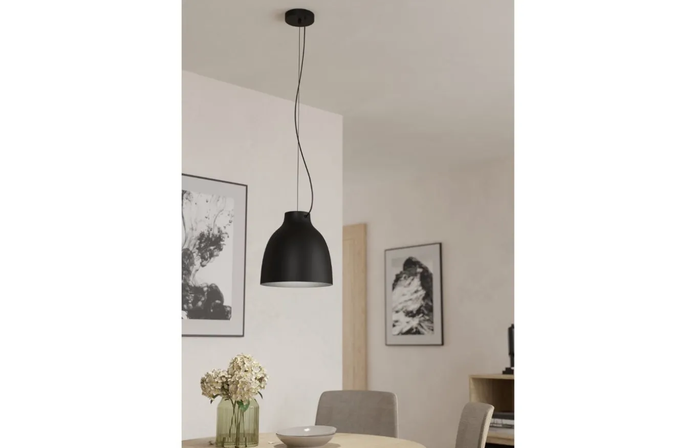La lámpara colgante Camasca está realizada con una pantalla en forma de campana realizada en metal de color negro y una suspensión de metal del mismo color. Es regulable en altura y, con su diseño monocromático, se integra bien en un mobiliario de estilo minimalista.