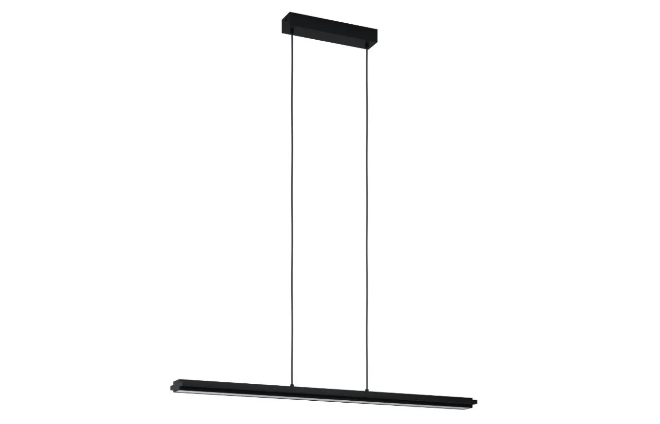 La lámpara colgante Cambulos está fabricada por un elemento metálico alargado suspendido por dos cables. En el medio del elemento suspendido se encuentra una superficie luminosa de acrílico blanco. Los LED integrados emiten una agradable luz blanca cálida debajo de la lámpara y se pueden ajustar con un regulador.