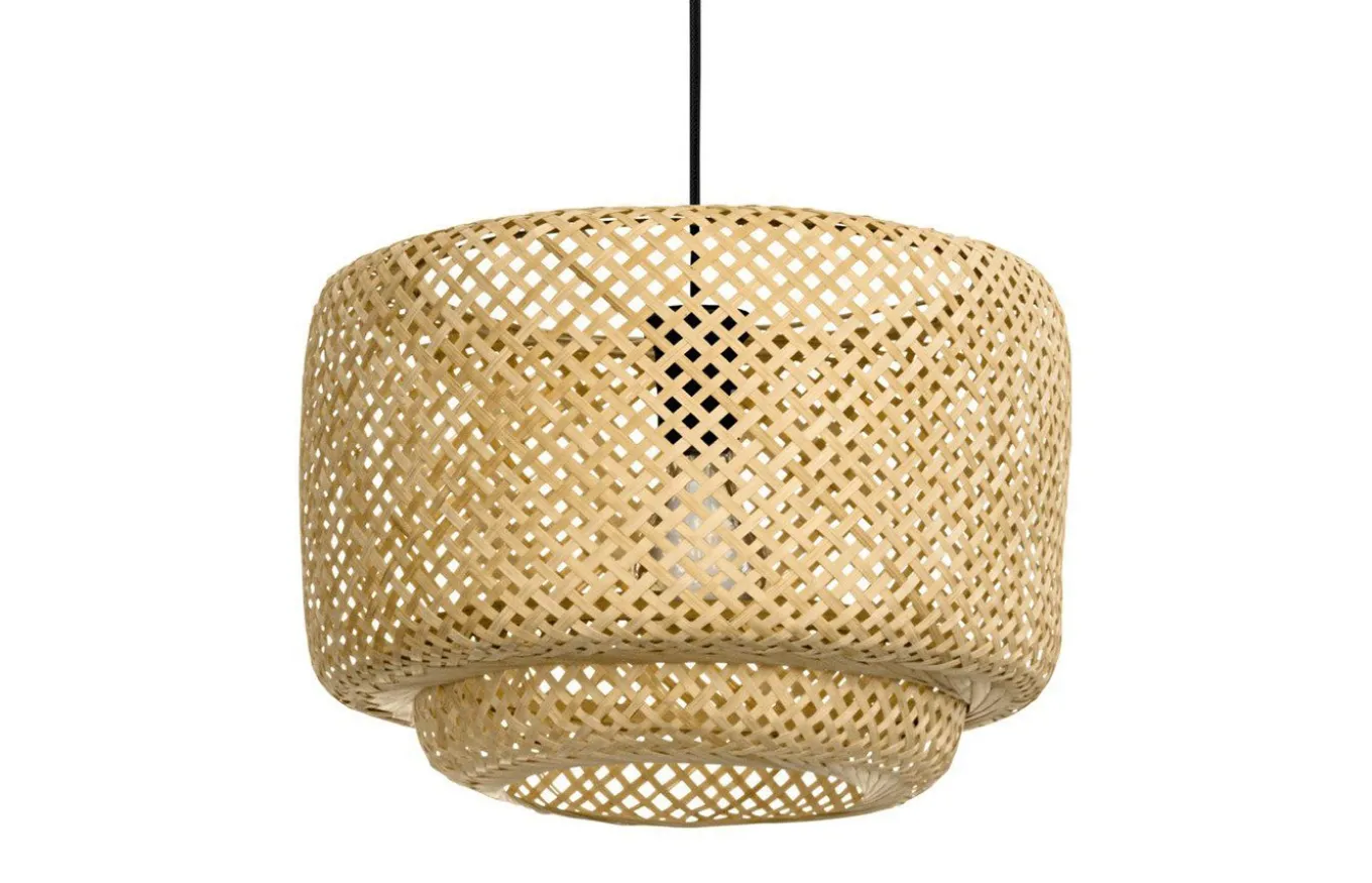 La Luminaria colgante Hettonle está compuesta por una suspensión de metal negro con una pantalla redonda en dos niveles de tejido de ratán de color natural y un cable textil negro. La pantalla trenzada proporciona una iluminación especial y crea un atractivo juego de luces y sombras en el techo y la pared. Esta lámpara colgante se adapta bien a los estilos de decoración Nature y Boho.