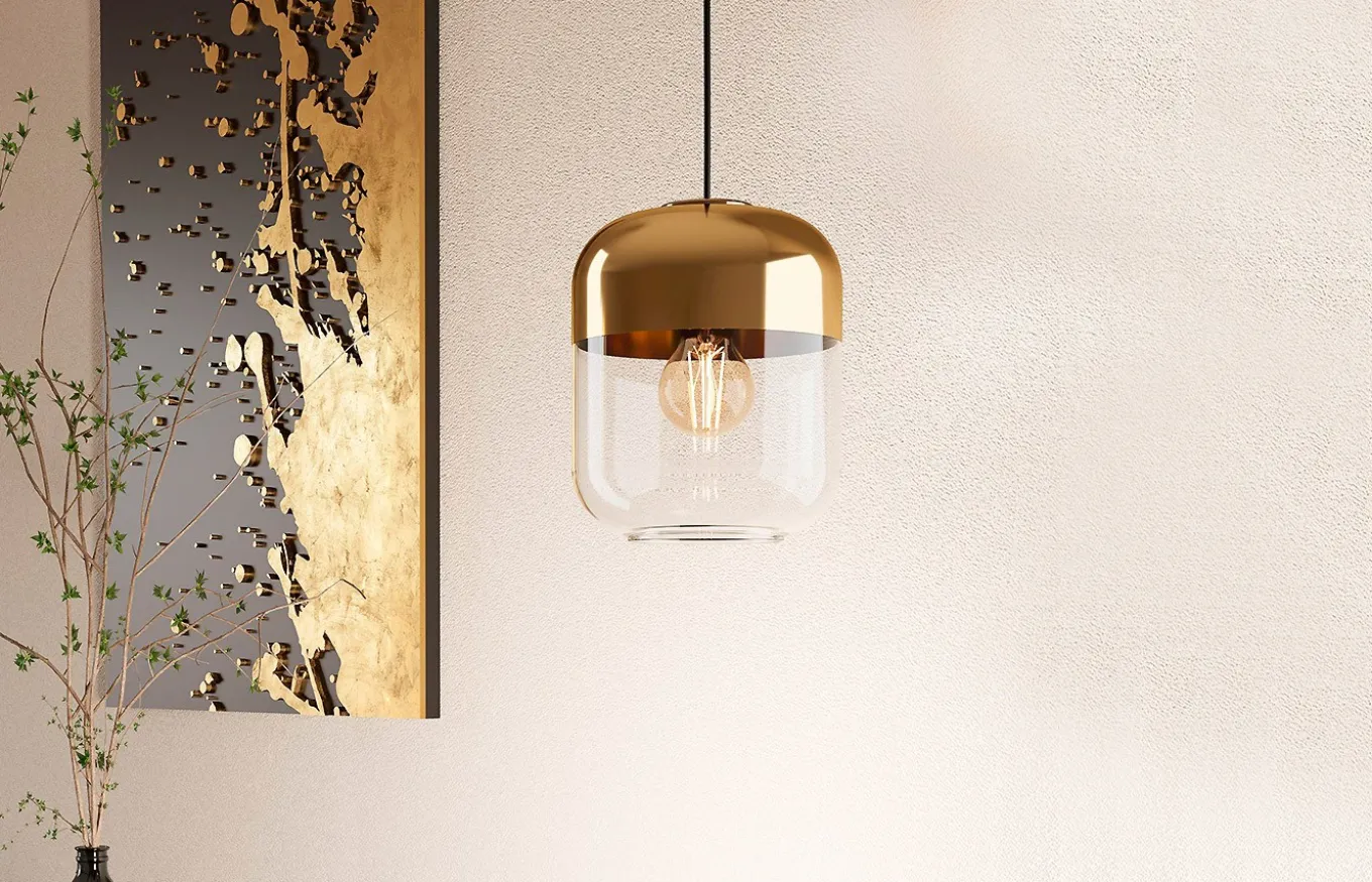 La lámpara colgante Maryvilla tiene una pantalla fabricada en vidrio vaporizado y la carcasa en acero. El aspecto moderno de la lámpara garantiza una iluminación agradable en cualquier estancia del hogar.