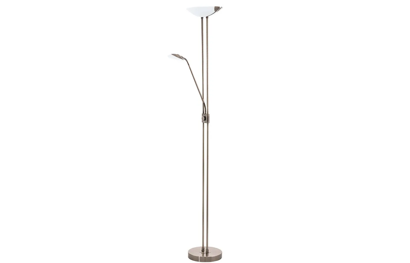 La lámpara de pie Baya led está fabricada en metal bruñido. La pantalla de vidrio en color blanco proyecta la luz hacia el techo, creando una agradable iluminación indirecta. El elemento de luz en el cuerpo de la lámpara es flexible por lo que es ideal como luz de lectura.