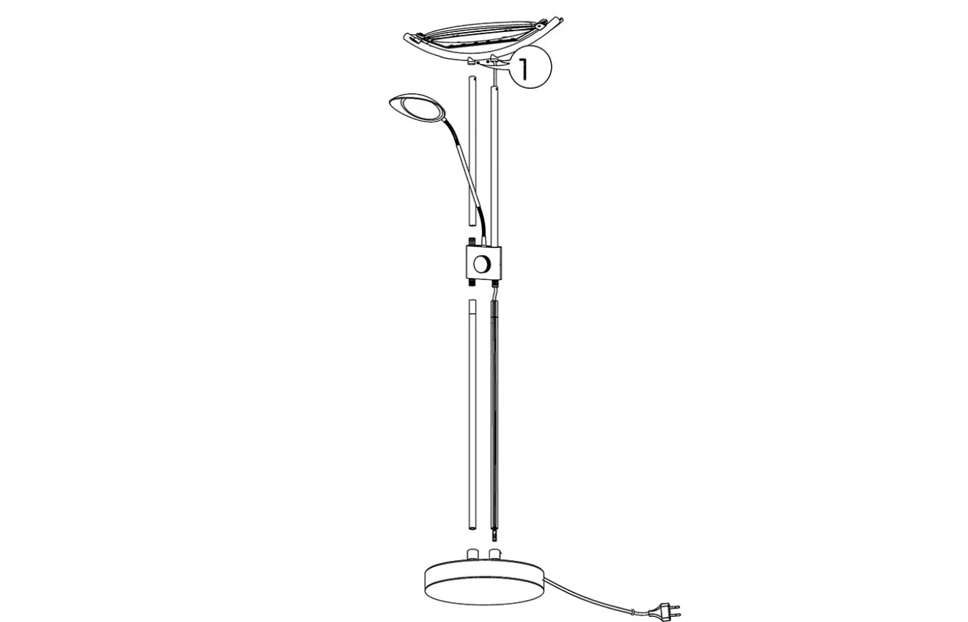 La lámpara se puede encender y apagar fácilmente con un interruptor en el cabezal. La luz principal se puede encender, apagar y regular mediante un interruptor giratorio en el cuerpo de la lámpara. Los LED integrados emiten una agradable luz blanca cálida.