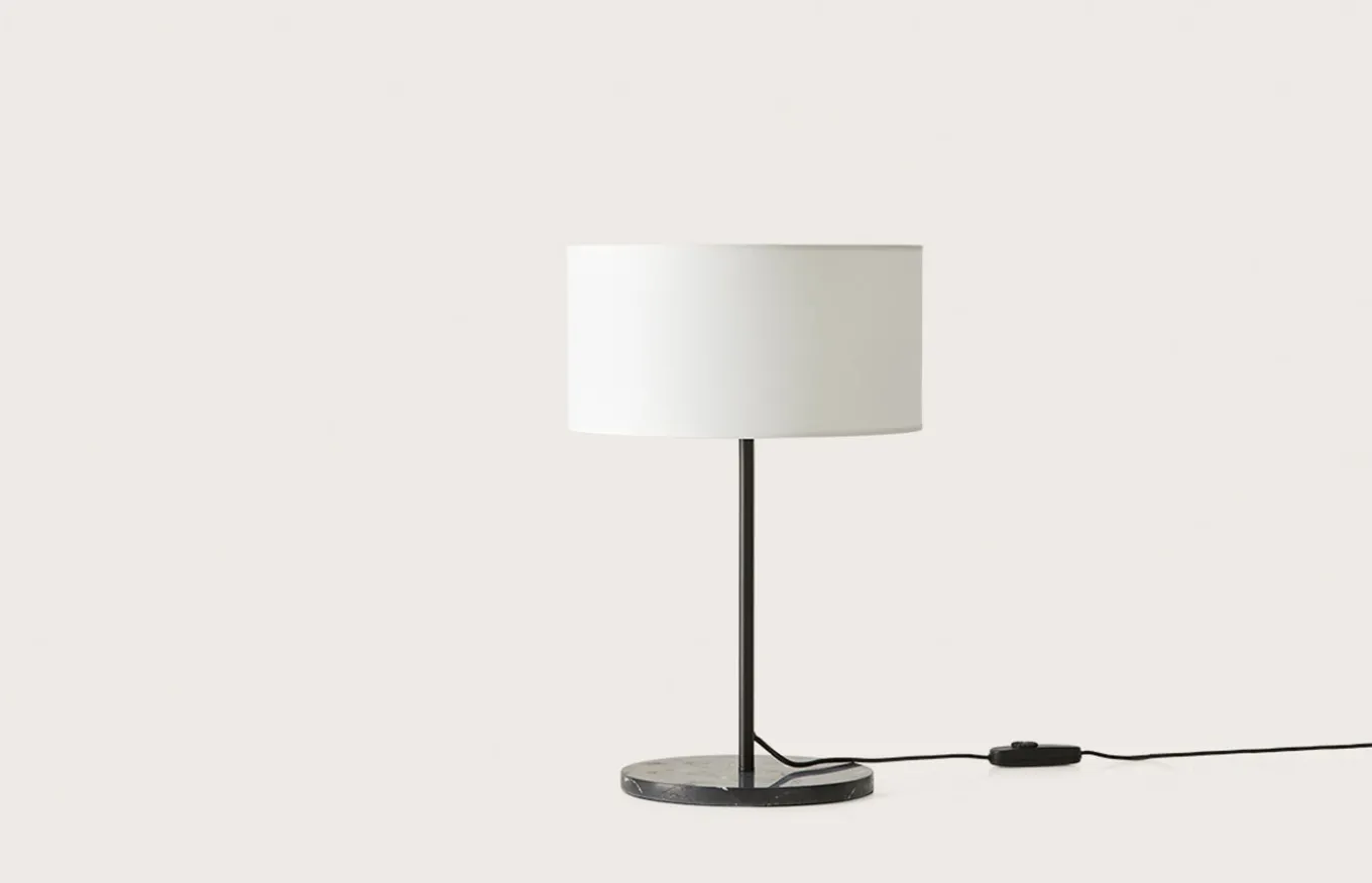 Luminaria de sobremesa Hedra es una pieza que combina un acabado de óptima calidad y un diseño sofisticado. Incluye una base circular de mármol y una estructura de acero, materiales que le aportan resistencia y durabilidad.