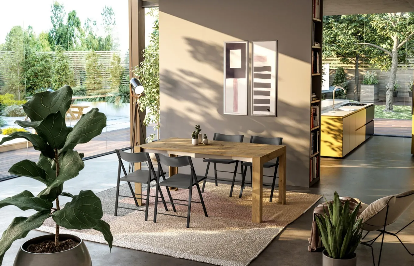 La mesa consola Slimmy destaca por su reducido tamaño y al mismo tiempo por su gran estabilidad. Apta para cualquier rincón de la casa, con sus pequeñas dimensiones, se transforma en una gran mesa de comedor capaz de acomodar a 8 comensales.