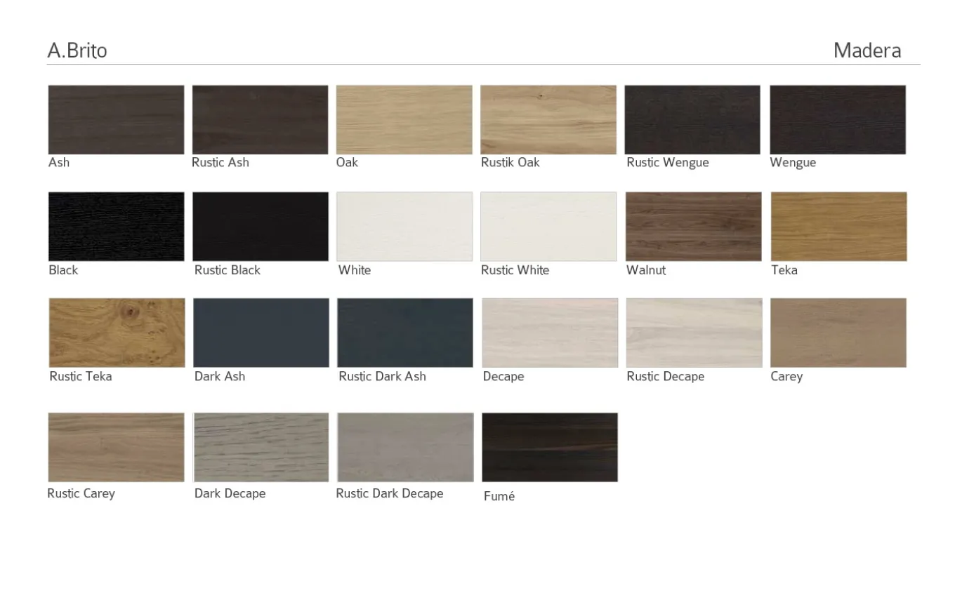 - Colores de material porcelánico a elegir en las piezas que lo lleven.
