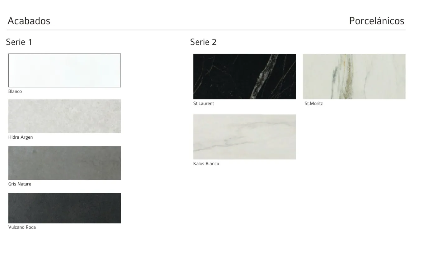 - Tapa: Porcelánico. Ver imagen de acabados.