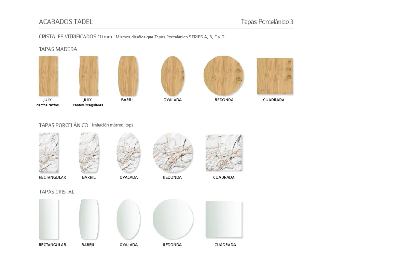 - Tablero tipo tapa July de chapa de madera con cantos irregulares macizos.