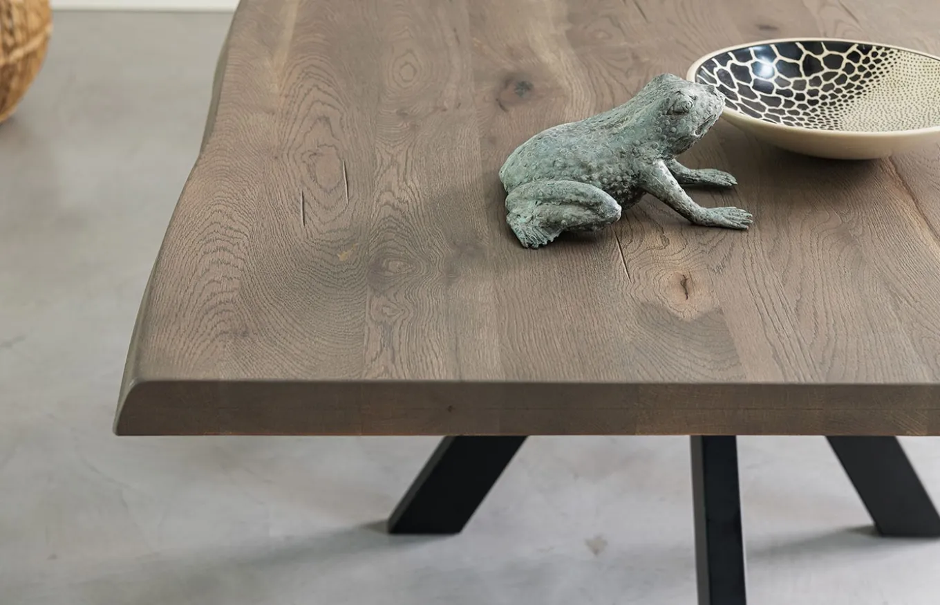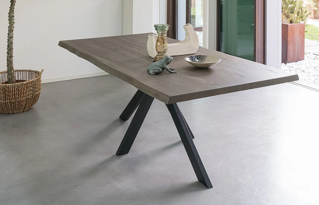 Mesa de comedor Cross combina la ligereza estética con una gran solidez. Con sus geometrías, Cross da profundidad a los pequeños espacios. El diseño de Rivanova es muy funcional, fácil de interpretar, pero al mismo tiempo rico en detalles dados por los materiales utilizados: madera natural, cristal y hierro. Rivanova selecciona la madera por su singularidad, realzada por imperfecciones naturales que son consideradas parte integrante del resultado final que se quiere conseguir.