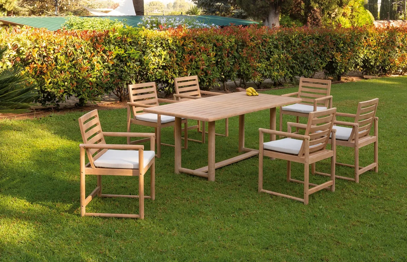 ¿Pensando en darle un toque de elegancia y nobleza a los espacios de exterior de tu hogar?. La mesa de comedor de exterior Green es perfecta si lo que buscas es dar un aire fresco y veraniego al ambiente.