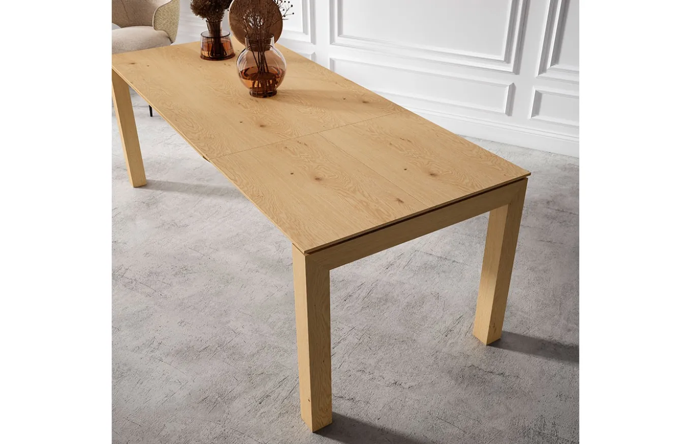 La mesa de comedor extensible Bass es la nueva propuesta de Rodri Diseño en su nuevo lanzamiento del catálogo Solid 2024. Bass está fabricada en chapa de madera de roble con un diseño en líneas rectas y puras de estilo natural.