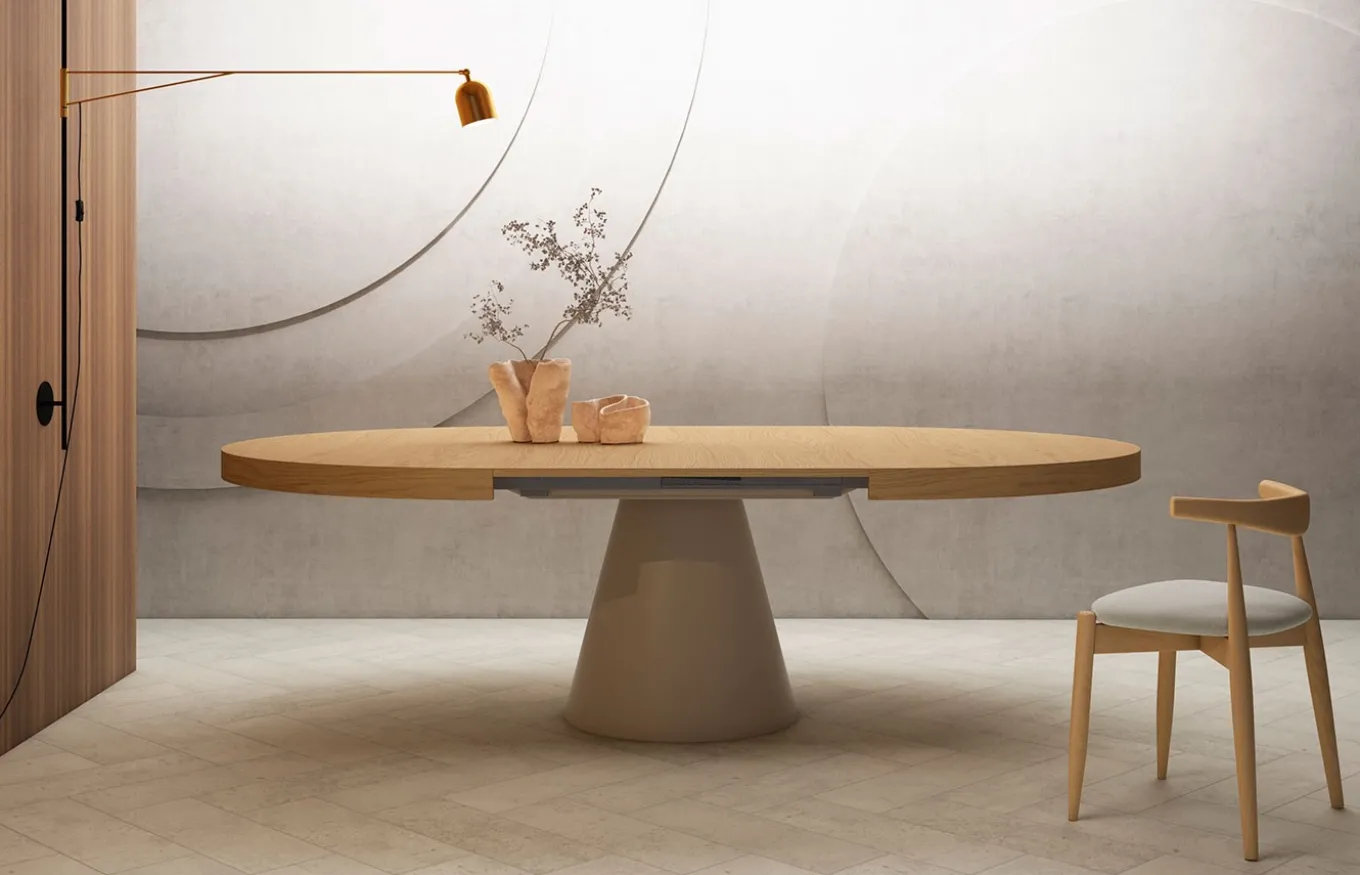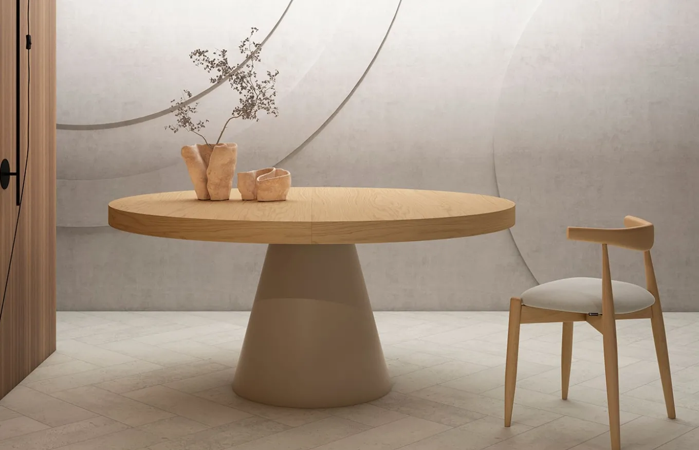 La mesa de comedor extensible Hayon es la nueva propuesta de Rodri Diseño en su nuevo lanzamiento del catálogo Solid 2024. Destaca su forma redonda con canto recto de gran grosor y su tamaño, que te permite colocarla en cualquier estancia de tu hogar gracias a la amplia disponibilidad de medidas.