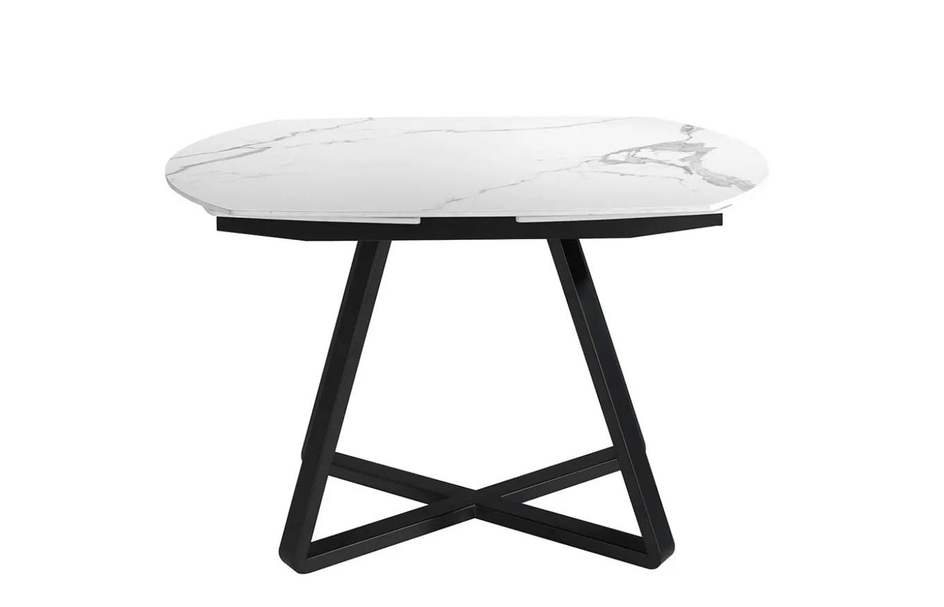 Mesa de comedor con forma ovalada barril, extensible a través de mecanismo de apertura giratoria automática. Su tapa de mármol porcelánico de 6 mm de espesor, así como su estructura fabricada en acero epoxi tintado en color negro, hace de esta mesa, una pieza exclusiva y única para tu comedor. Por sus dimensiones y forma, así como por sus extensibles de 30 cm, es perfecta para acomodar de forma práctica y con el máximo confort a tus comensales.