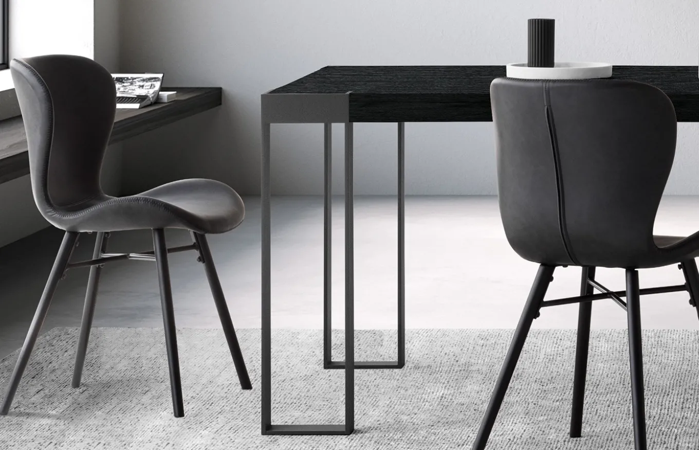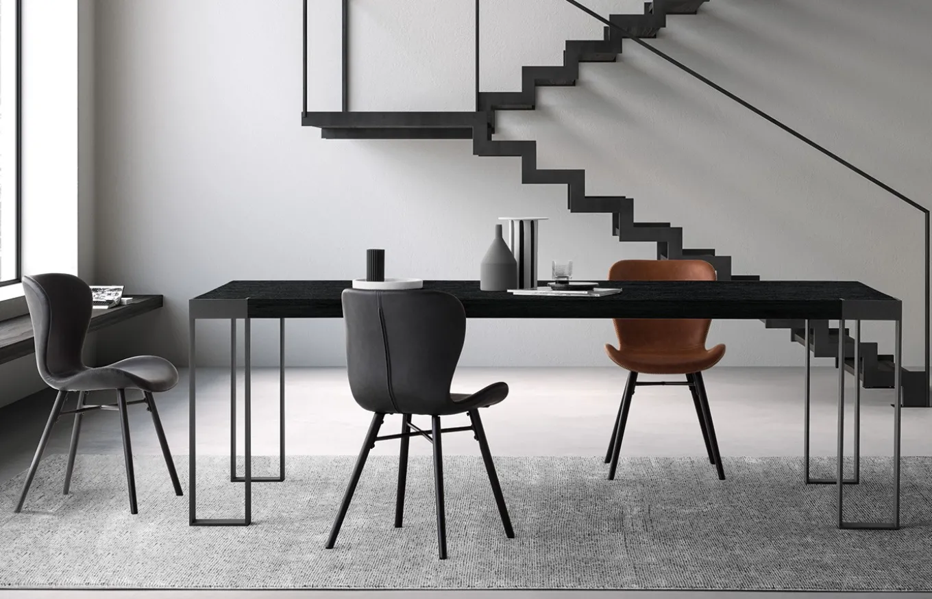 La mesa de comedor Frame destaca por sus líneas rectas y su estilo moderno con aire industrial. Su punto fuerte es el encuentro entre la pata y el tablero de la mesa, un detalle impecable que hace que la madera y el hierro se fusionen como un solo elemento.