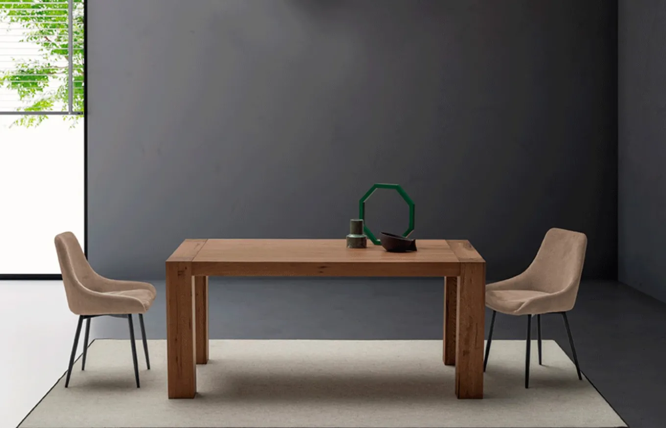 - Robustas patas de 14×14 cm fabricadas también en roble matérico.