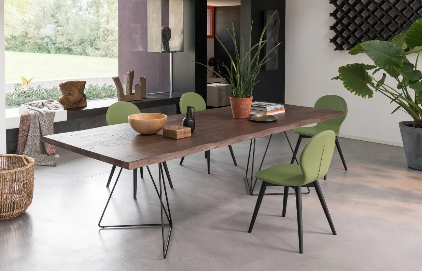 La Mesa de comedor Filo combina la ligereza estética con una gran solidez. El diseño de Rivanova es muy funcional, fácil de interpretar, pero al mismo tiempo rico en detalles dados por los materiales utilizados: madera natural, cristal y hierro. Rivanova selecciona la madera por su singularidad, realzada por imperfecciones naturales que son consideradas parte integrante del resultado final que se quiere conseguir.