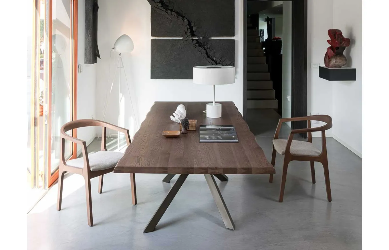 Mesa de comedor Ghemon combina la ligereza estética con una gran solidez. El diseño de Rivanova es muy funcional, fácil de interpretar, pero al mismo tiempo rico en detalles dados por los materiales utilizados: madera natural, cristal y hierro. Rivanova selecciona la madera por su singularidad, realzada por imperfecciones naturales que son consideradas parte integrante del resultado final que se quiere conseguir.