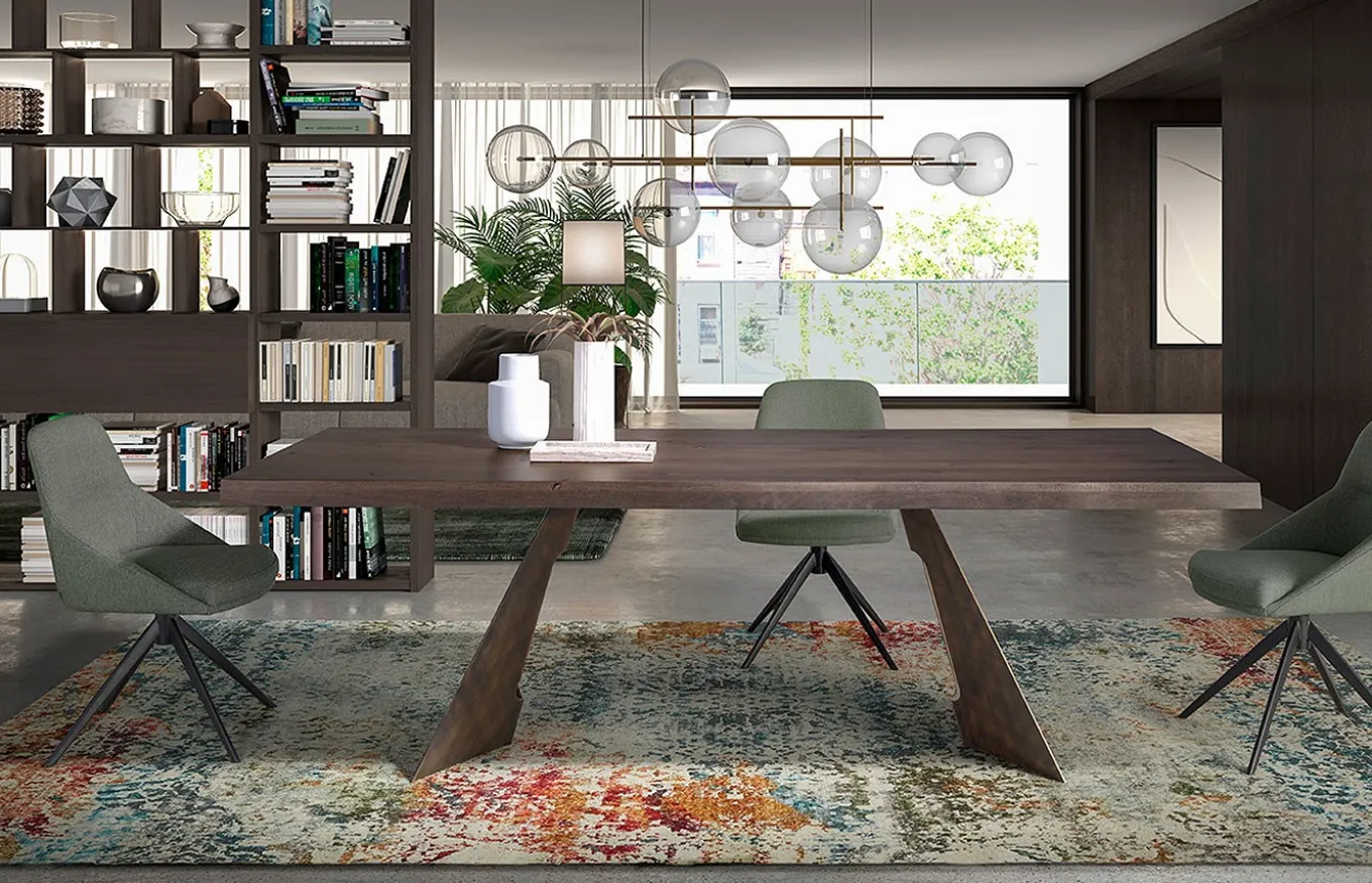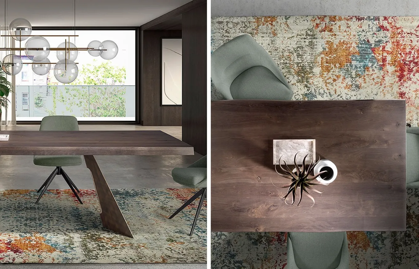 La mesa de comedor Kiv Wood es una mesa de líneas puras y sencillas que, gracias al diseño, los materiales y los acabados, ilumina el salón. Su fabricación fusiona unas patas metálicas y un elegante tablero de madera.