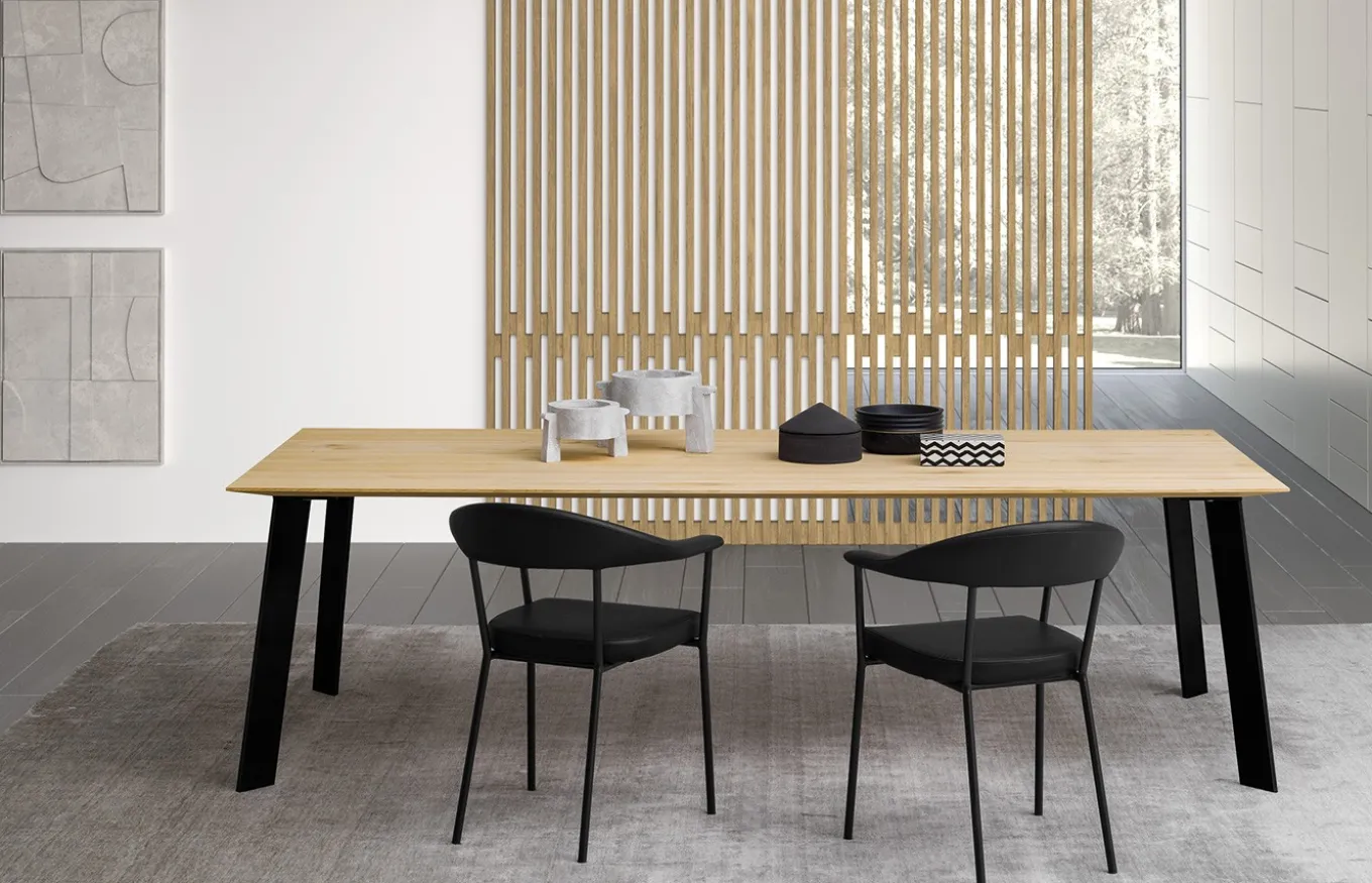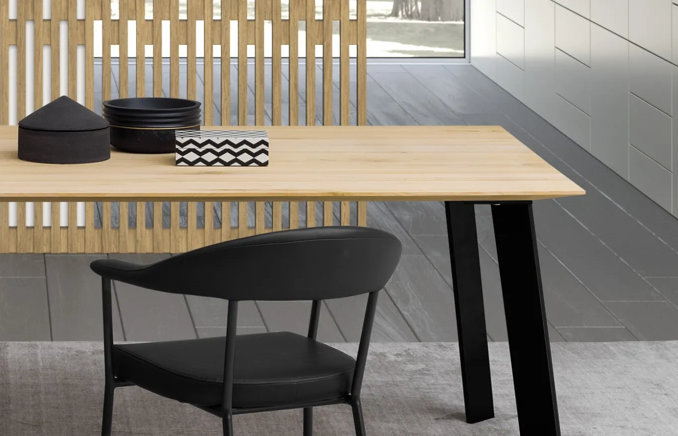 Mesa de comedor perteneciente a la colección Free Tables de , una marca de diseño y fabricación italiana. La colección Free Tables consiste en un innovador sistema a través del cual puedes configurar tu mesa eligiendo el modelo de tablero, de patas y sus acabados, obteniendo múltiples combinaciones. Además, si las medidas de serie del tablero no te encajan, se puede hacer a medida (siempre respetando los límites admitidos). En este caso tenemos una mesa con un tablero Manhattan combinado con patas Pass.