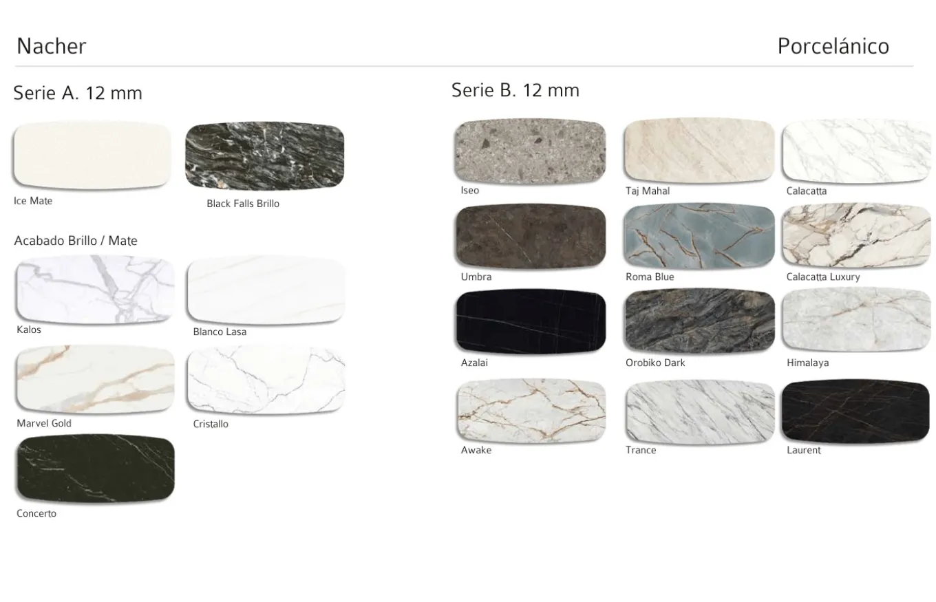 - Tapa porcelánica de 12 mm de grosor.