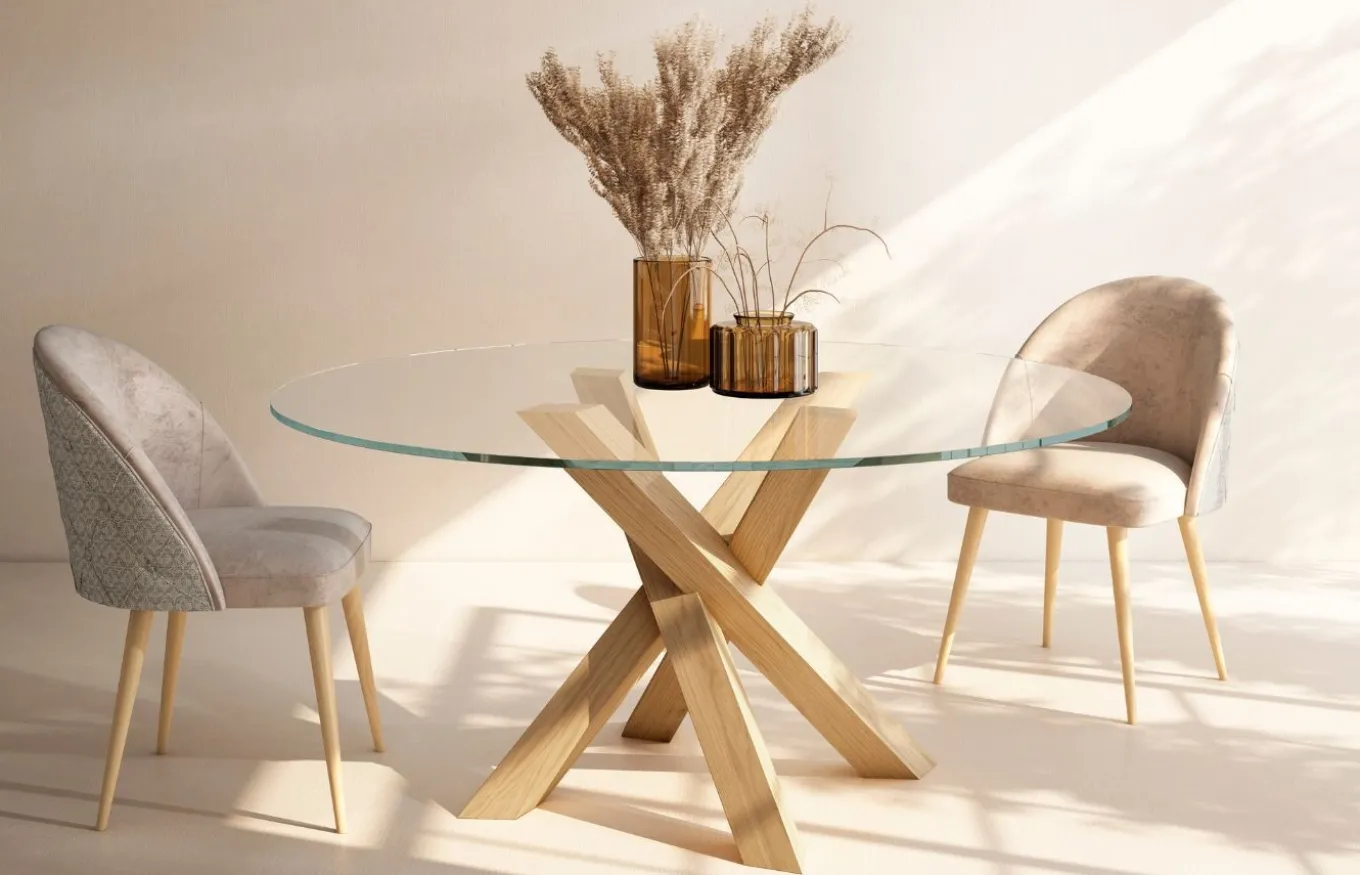 Su forma redonda de la mesa de comedor Ural crea una atmósfera acogedora y fomenta la conversación entre los comensales. Las líneas limpias y el pie central la convierten en una pieza versátil que se adapta a diferentes estilos de decoración. La mesa Ural está fabricada con materiales duraderos y resistentes, lo que garantiza su larga vida útil.
