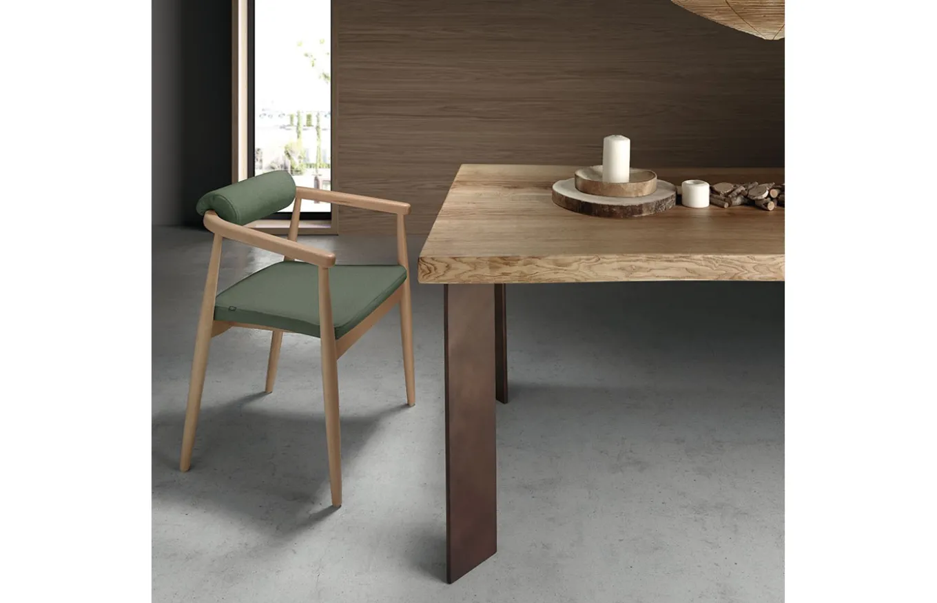 La mesa de madera maciza Priego de Almosa es una pieza que destaca por su equilibrio entre diseño contemporáneo, robustez y funcionalidad. Está fabricada con un tablero de madera maciza de fresno de 5,3 cm de grosor. Su tablero se apoya sobre cuatro patas metálicas con perfil en diagonal, un diseño que aporta dinamismo visual y ligereza sin renunciar a la estabilidad.