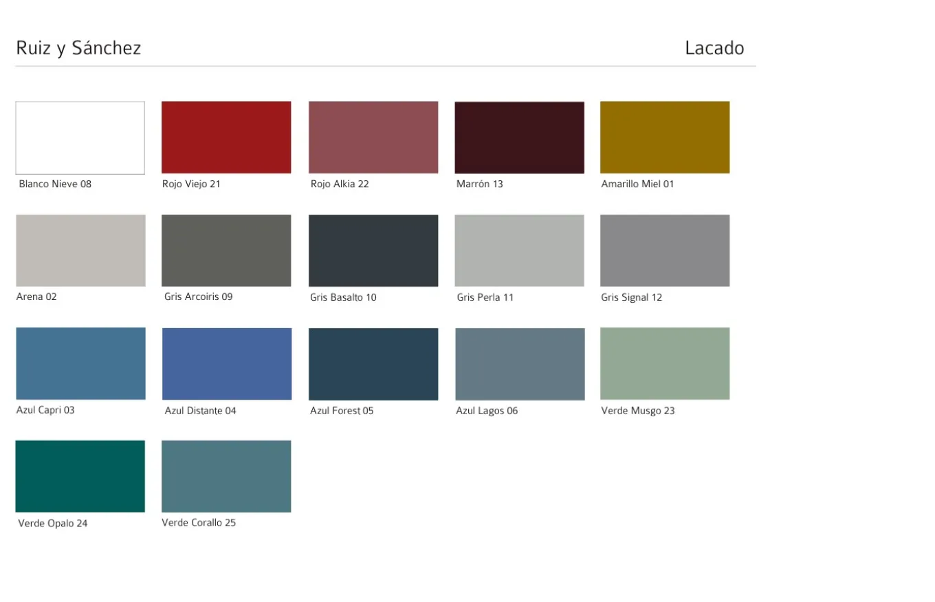 - Existen tres tipos de acabados, lacados acrílicos sobre MDF (LA), lacados acrílicos a poro abierto sobre roble (PA) y acabados naturales sobre roble.