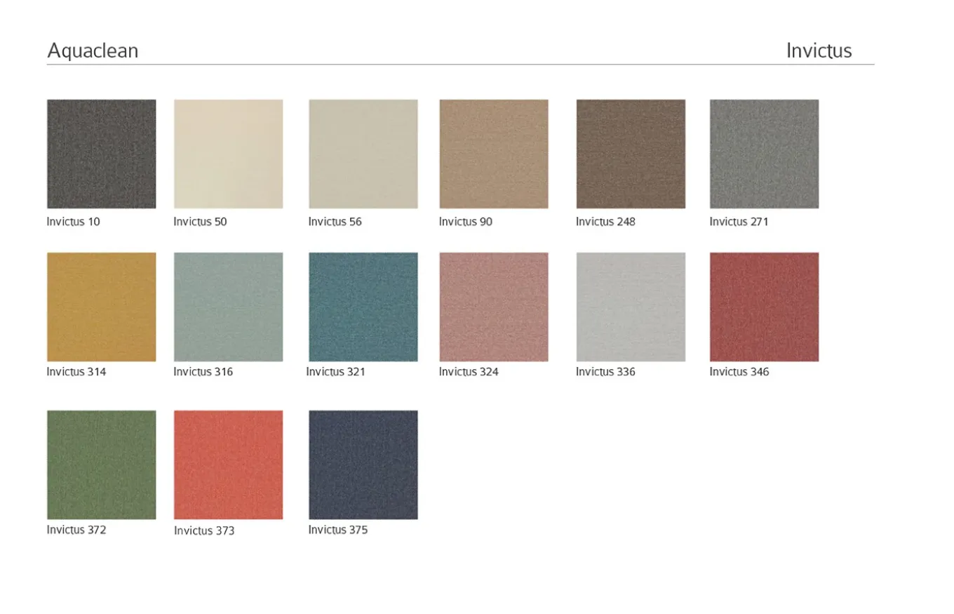 - Tapizado en tejido Aquaclean. Tratamiento revolucionario que permite que se limpien las manchas simplemente utilizando un poco de agua. Aquaclean ayuda a desaparecer la mayoría de las manchas domésticas (vino, grasa, chocolate…). Ver imagen de acabados.